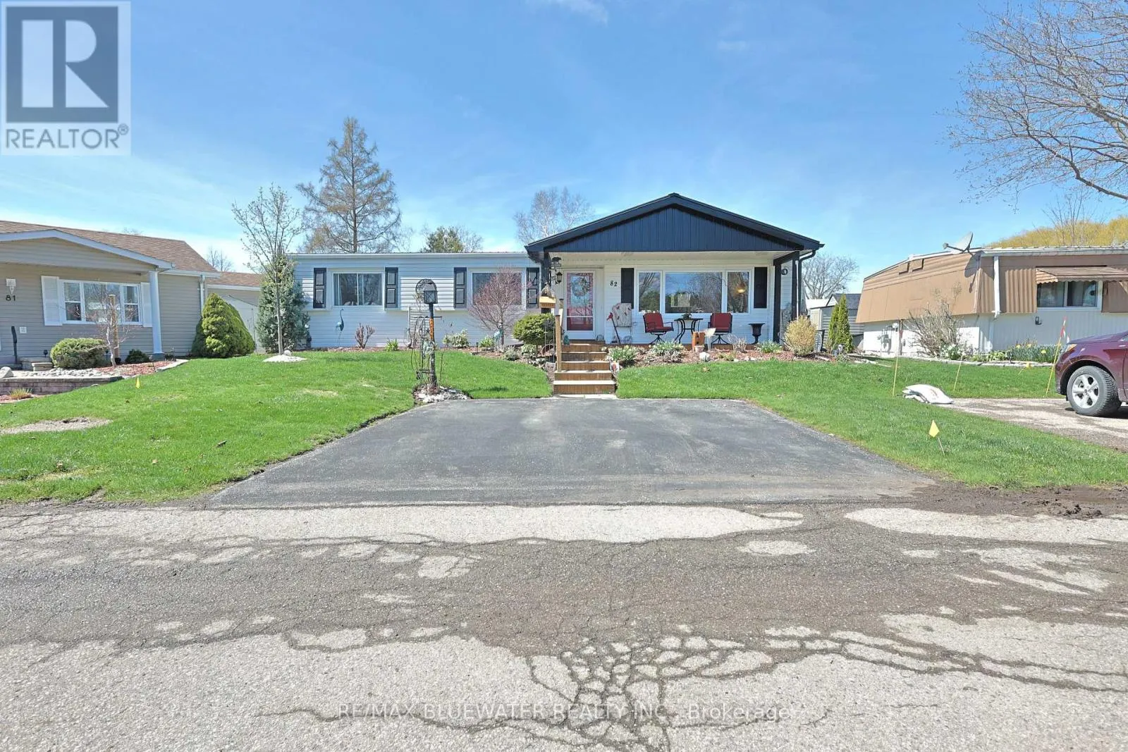 Welcome to 82 Dunes Drive in the land leased 55+ adult community of Grand Cove Estates in Grand Bend! This home offers 1,196 square feet of well appointed nicely updated living space with two bedrooms and 1.5 bathrooms. Extensive updates of this home were done in 2018! Exterior offers great curb appeal with covered front porch and vinyl siding. Step