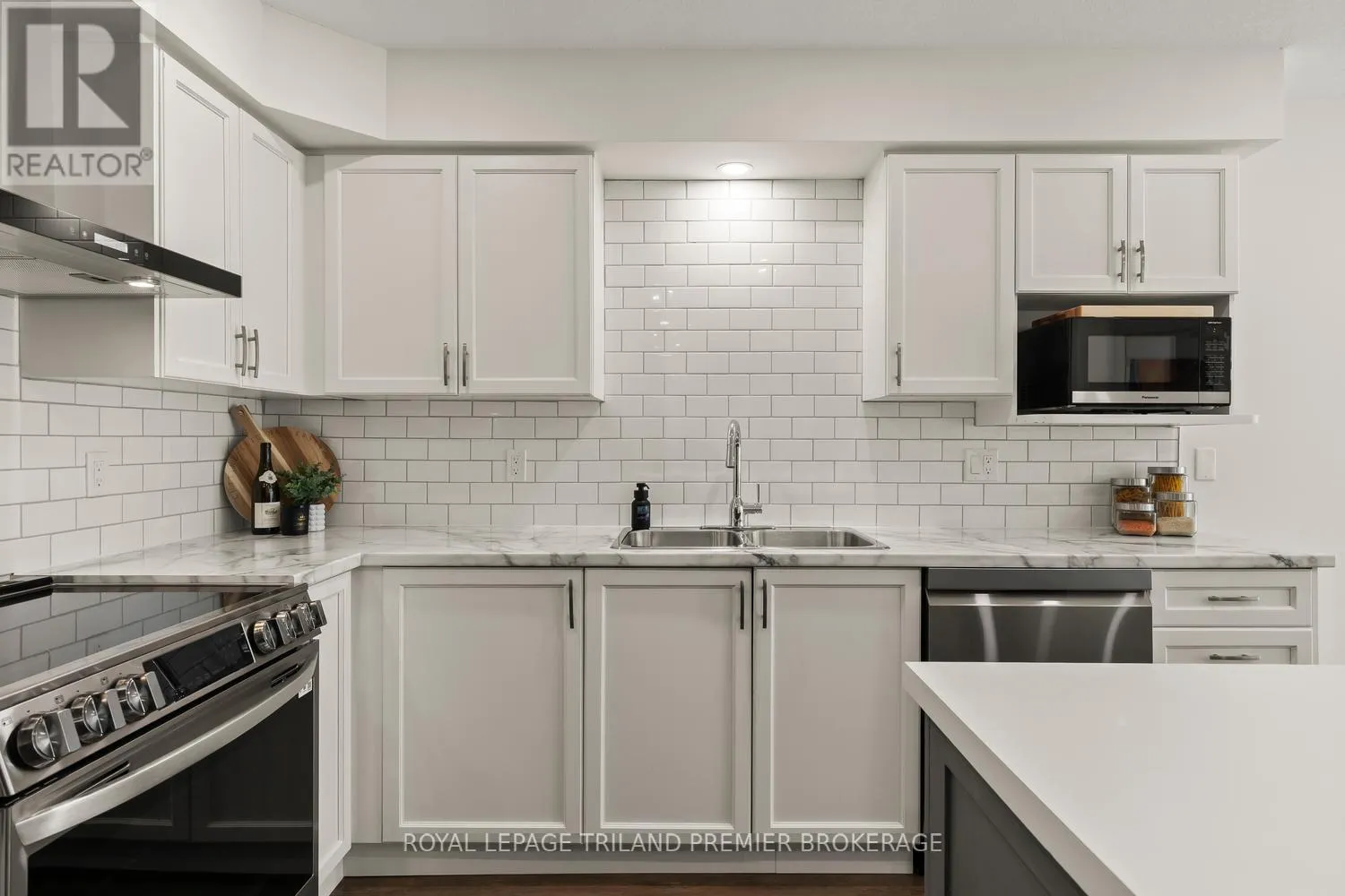 Welcome to this beautifully updated 2+1 bedroom condo in highly sought-after Masonville. Thoughtfully designed with modern finishes throughout, this home offers a bright, open-concept main level featuring a stylish kitchen with timeless cabinetry, tiled backsplash, and a large island with breakfast bar-perfect for everyday living and entertaining. The spacious living room is filled with natural light from a large