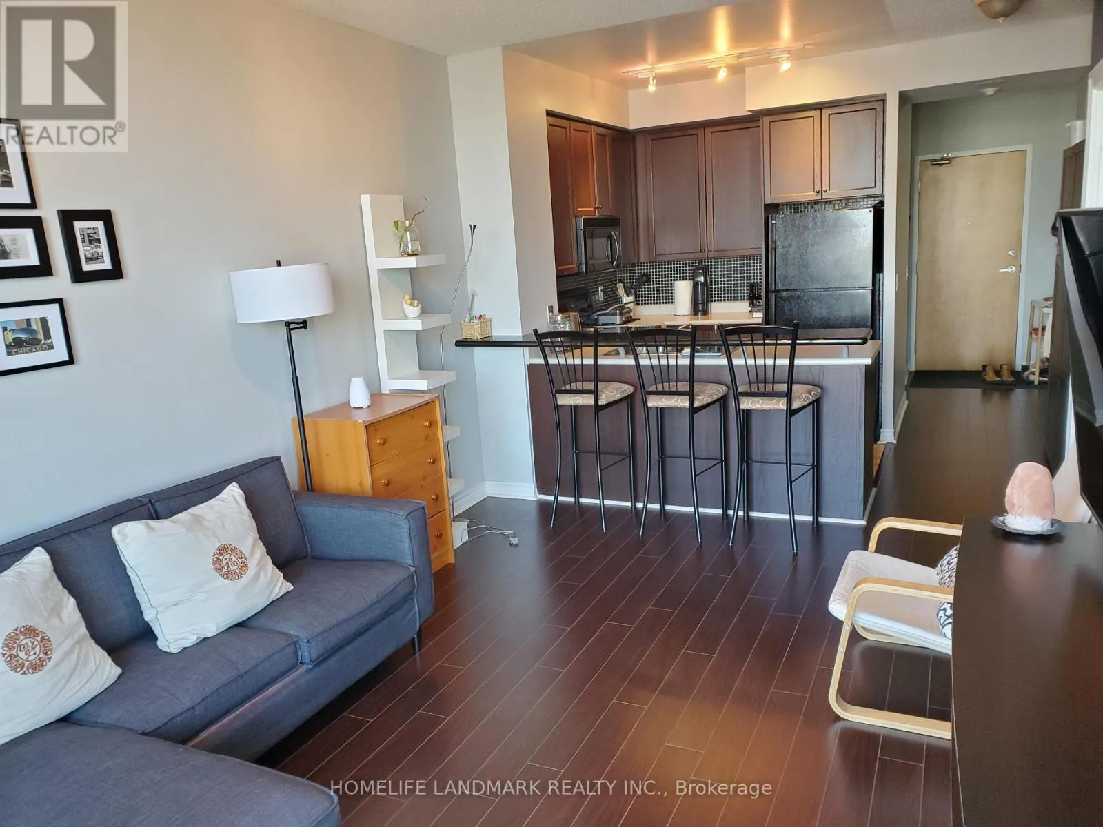 Furnished 1 bedroom & den suite! Nice layout! 9ft ceilings! Bedroom features double closet & private ensuite bath! 2-piece powder room for guests! Designer decor! Fabulous kitchen w/ black appliances, marble breakfast bar & glass tile backsplash! Great view from balcony! Walk to Square One, transit, library, YMCA & the list goes on! Well run building offers security & upscale