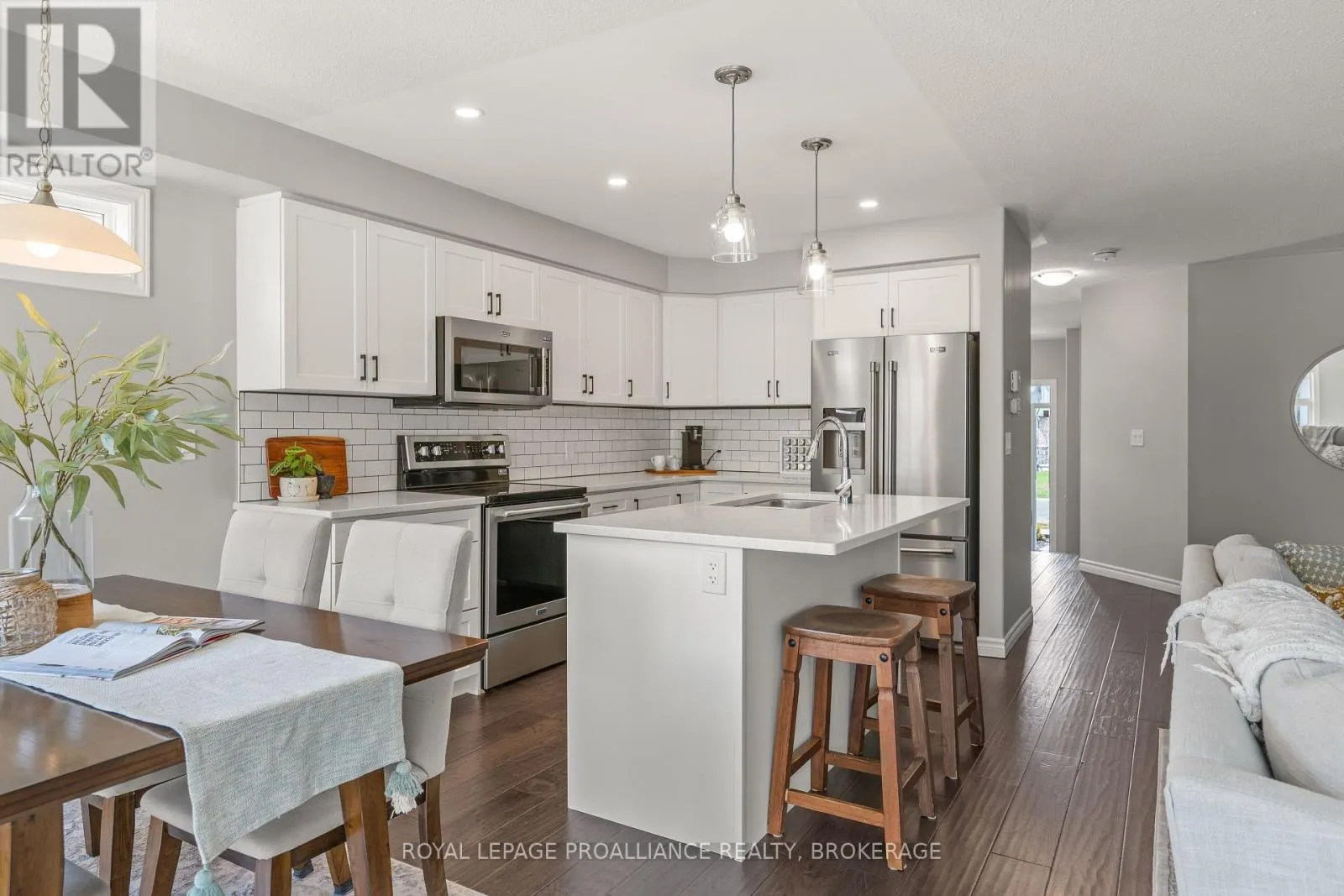 Presenting this Georgian Model by Braebury in Woodhaven offering 3 bedrooms, 2.5 baths over two storeys. This end-unit townhome features a fully fenced backyard with deck & a layout that moves naturally from one space to the next. The main floor is host to a spacious living area connecting directly to the dining space & open concept kitchen. The kitchen