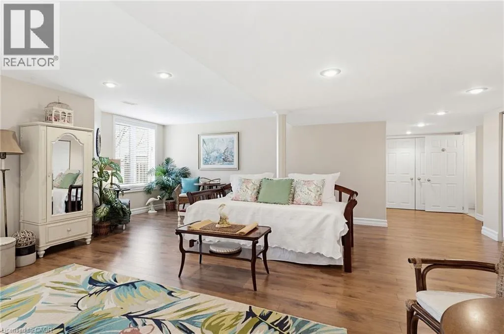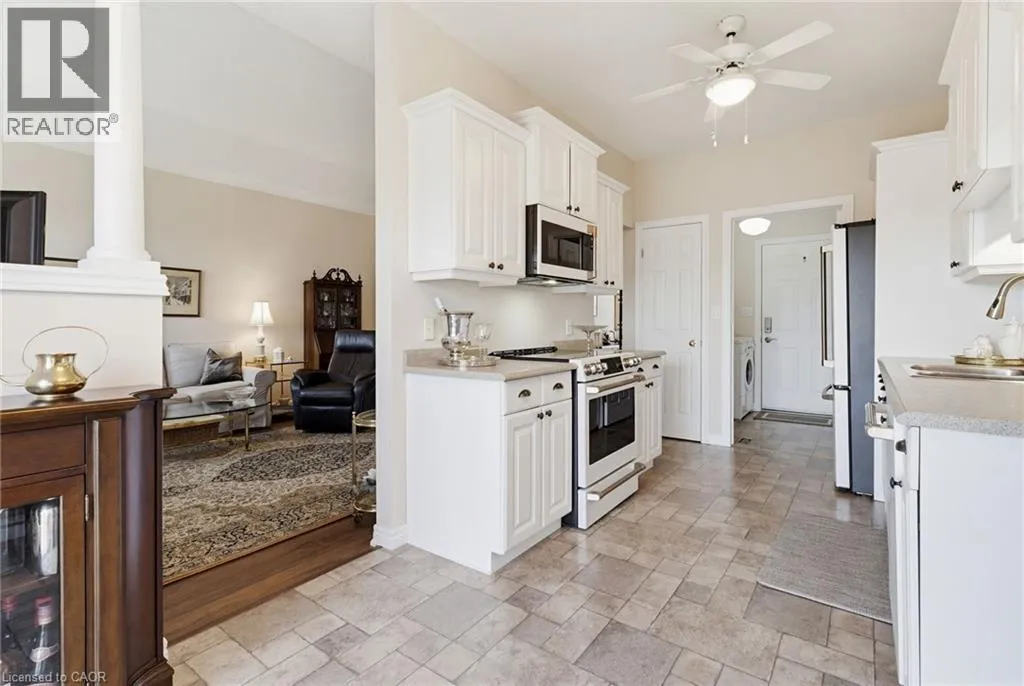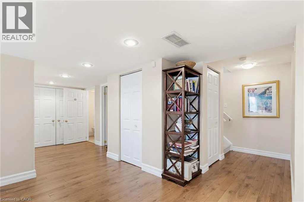 Walkout, Private Backyard. Don’t miss this beautifully updated 1400+ sq ft home in the welcoming adult community of Twentyplace. Backing onto quiet, private greenspace, it features a rare walkout basement with kitchenette. Bonus custom closets, shelving, and cupboards throughout. Main floor: freshly painted with new outlets, switches, and easy -care flooring. 9′ ceilings and solar tubes in both