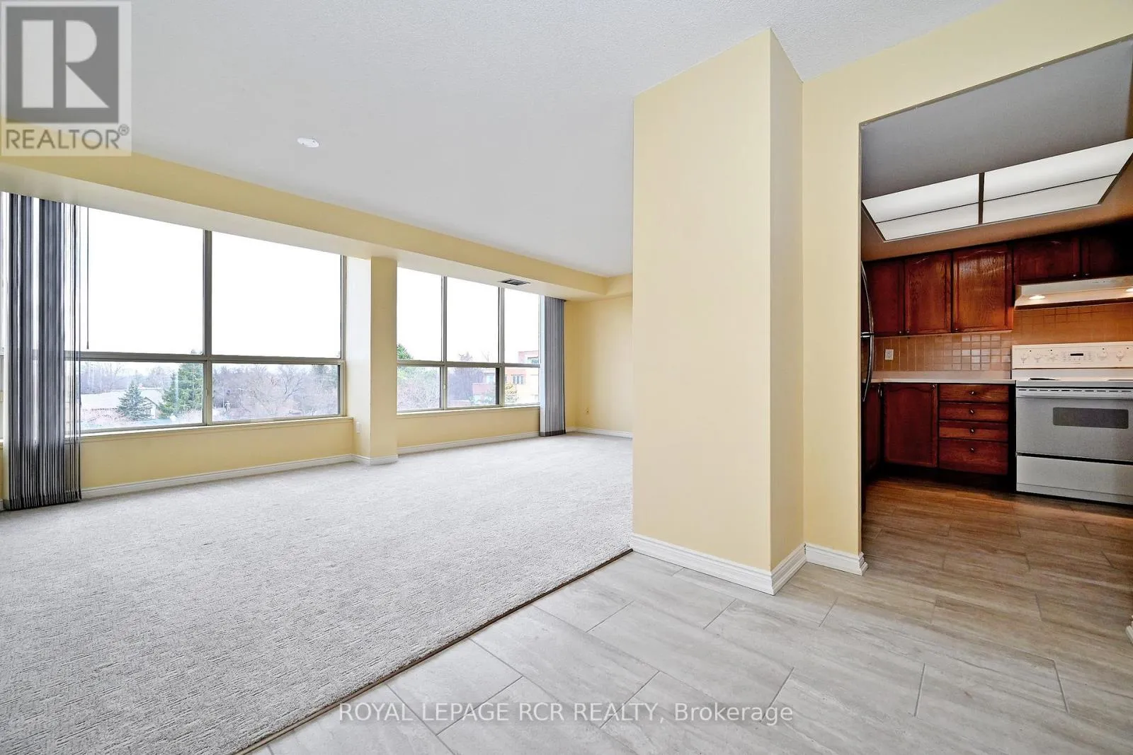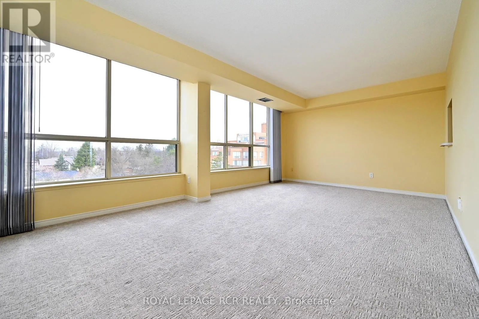 Highland Green, a sought-after building in the heart of Aurora. This well-established condominium is a great community unto itself. The 765 sf suite boasts newer broadloom, ceramic flooring (’24), and custom blinds (’24). Northern exposure floods this home with gentle, natural light. The treetop view from the fifth floor is a pleasure to behold with lovely long views. Residents enjoy