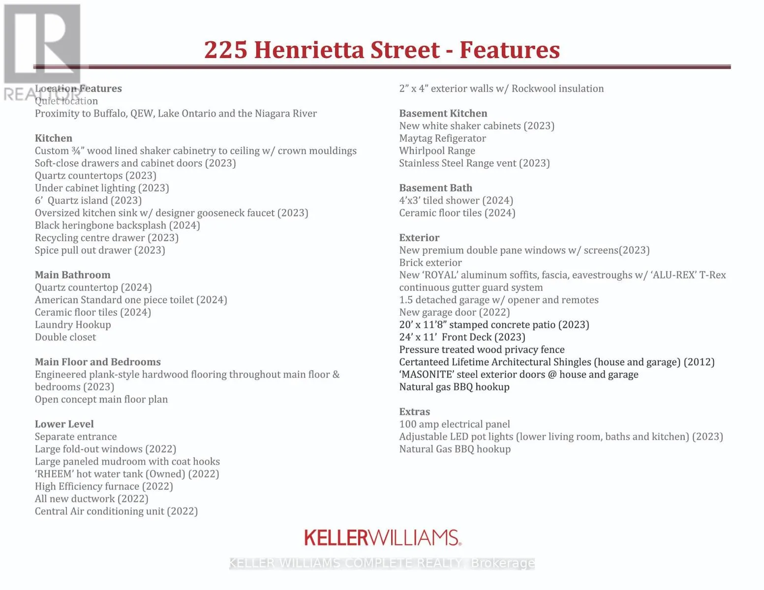 Stunning fully renovated 4 Bedroom 1.5 story solid brick home, centrally located in a quiet Fort Erie Neighborhood. Just minutes from the CAN/US border, Niagara Parkway Trail, FE Race Track, with easy access to the QEW. Recent Upgrades Include: – Double hung/Low ‘E’/Tilt-in for easy cleaning windows, Soffits, Fascia and Eavestroughs with gutter guards, Exterior and Interior Doors, HVAC (High