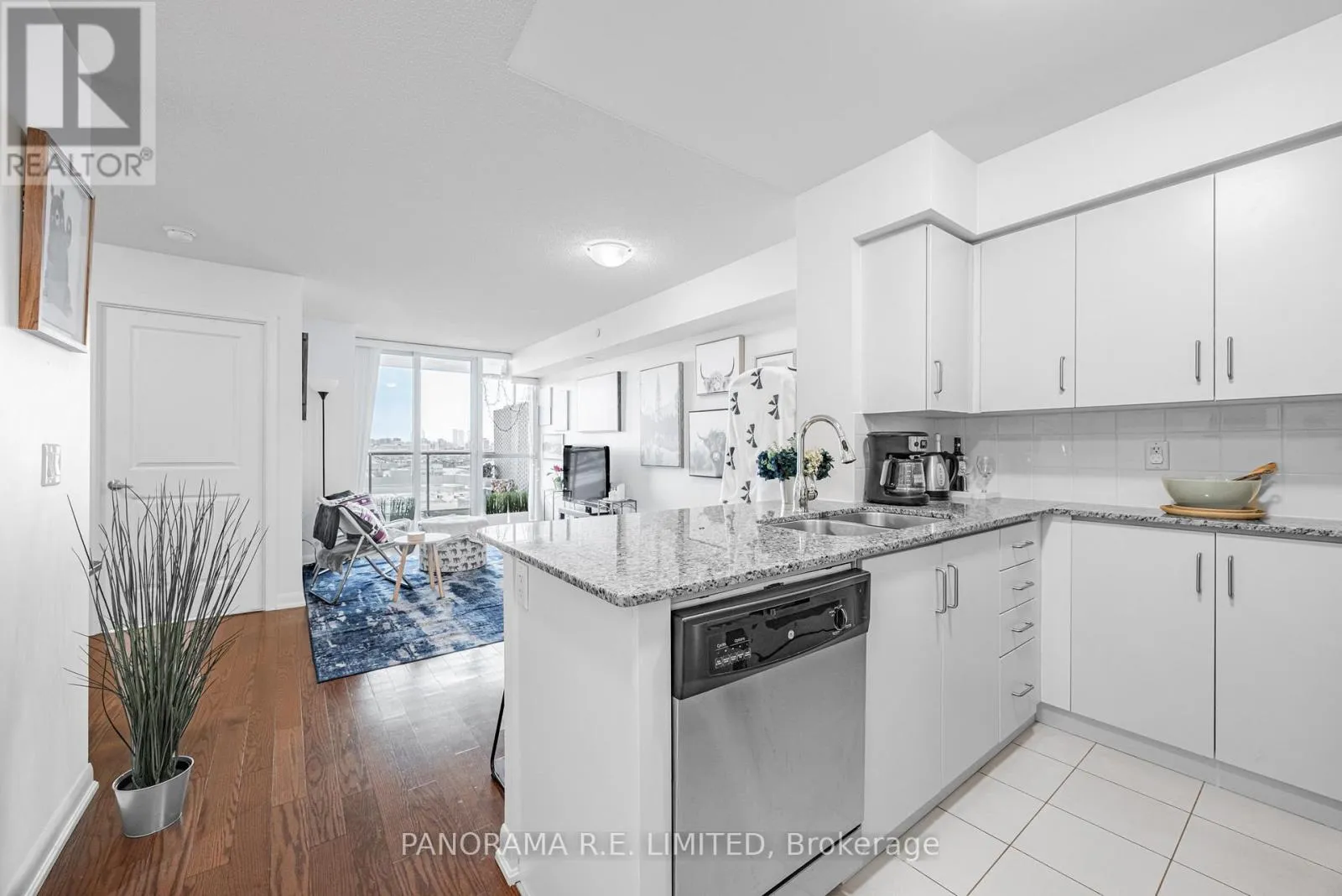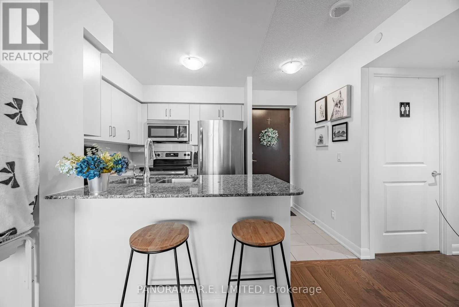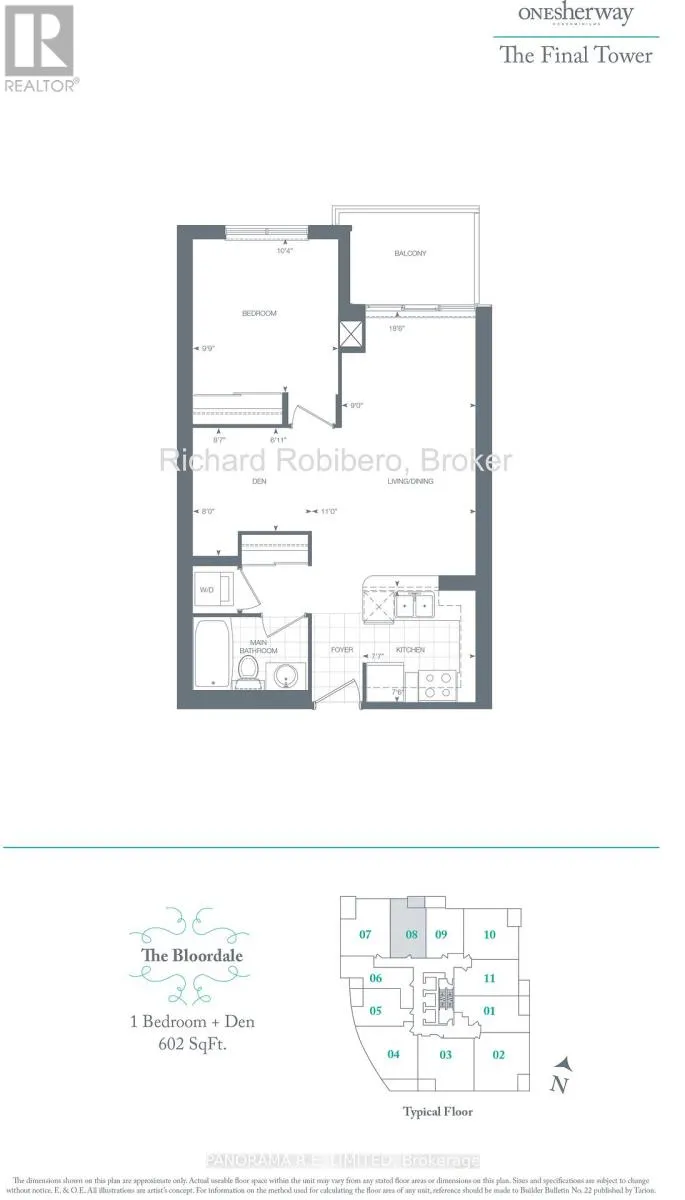 Suite 1208 is a very spacious 1 Bedroom plus Den layout at the high in demand One Sherway. This 602 sqft 1+1 unit features an open concept Living and Dining room with floor to ceiling windows and hardwood floors. The open Kitchen features granite counters, stainless steel appliances, and a breakfast bar for quick meals. The Primary Bedroom has a