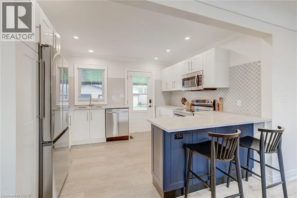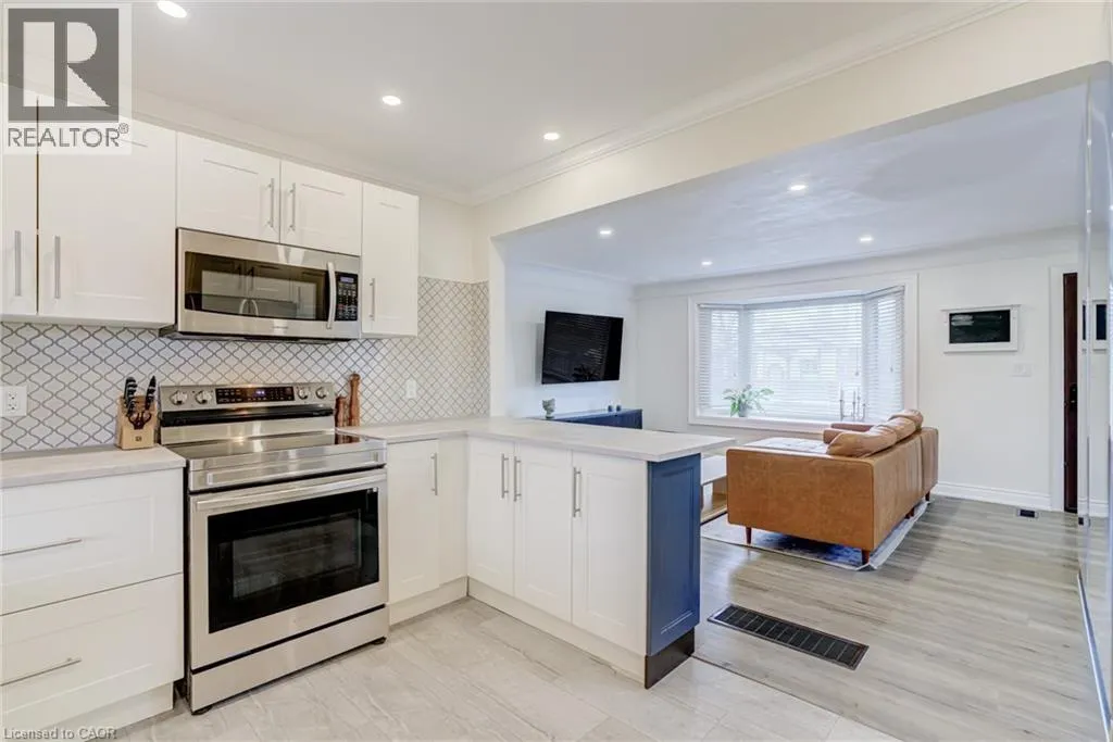 Set on a 48 x 132 ft fully fenced lot in a quiet Hamilton Mountain neighbourhood, 185 Deschene Avenue is a solid brick bungalow offering approximately 1,600 sq. ft. of finished living space across two levels. The main floor features a bright open layout with 2 bedrooms, a 4-piece bath, and an eat-in kitchen with new flooring that walks out