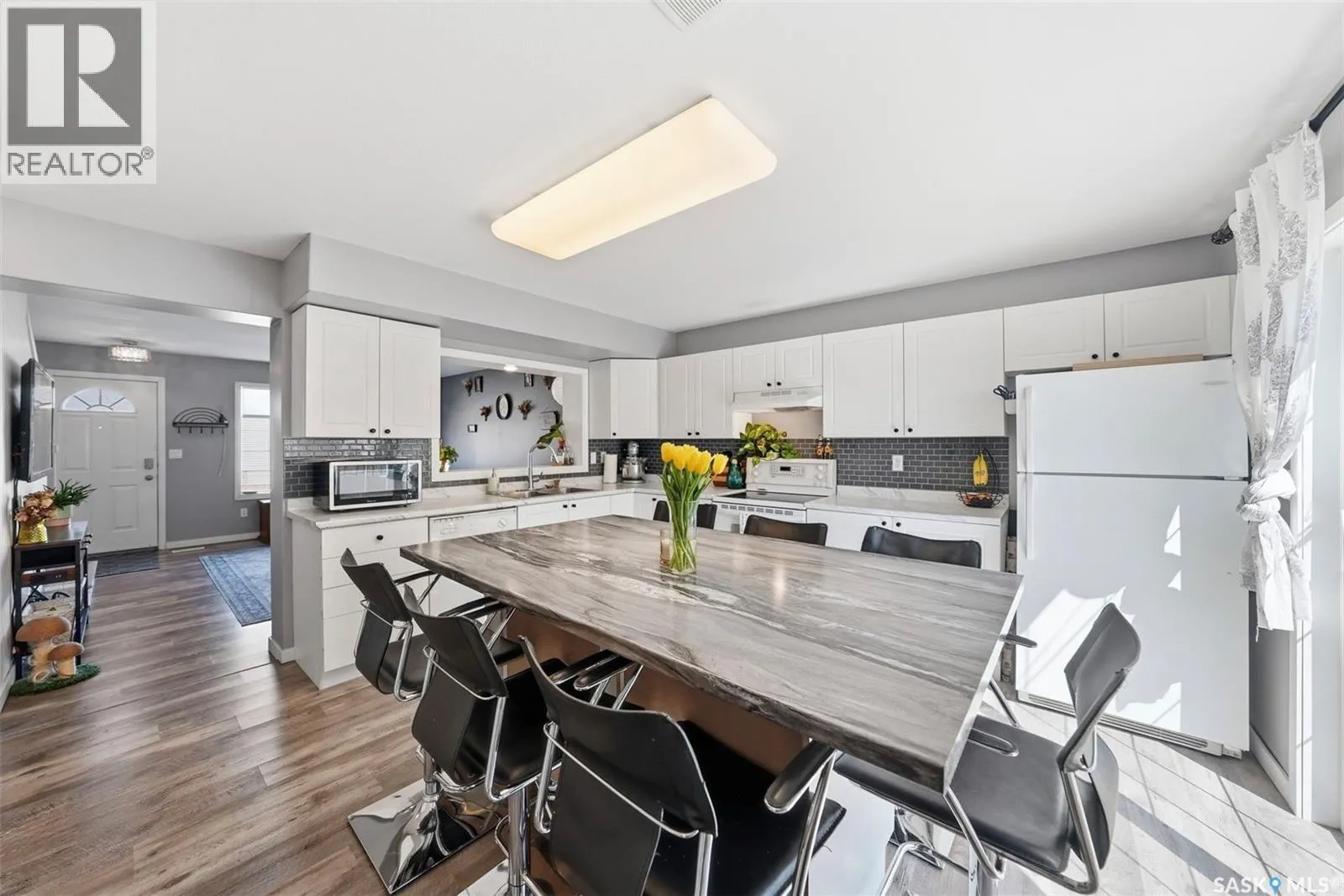 Discover this exceptional 1,116 sq. ft. townhouse in the heart of Arbor Creek, one of Saskatoon’s most desirable neighborhoods. Perfectly suited for first-time home buyers, investors, or those looking to downsize, this home combines functional design with an unbeatable location. The main floor welcomes you with a spacious, light-filled living room featuring large windows that create an inviting atmosphere. The