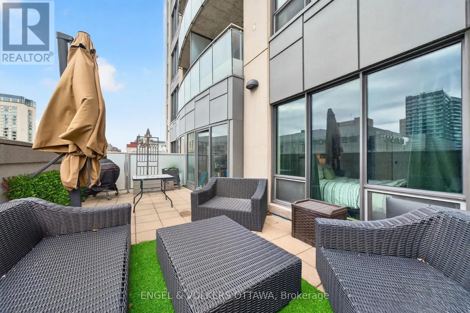 Welcome to 90 George Street, one of Ottawa’s most prestigious condominium residences. Situated on the fourth floor, this beautifully appointed one-bedroom + den suite offers a bright, south-facing layout and an expansive private terrace-perfect for enjoying sunshine throughout the day.Ideally located just steps from the vibrant ByWard Market, this home places you within walking distance of Parliament Hill, the National