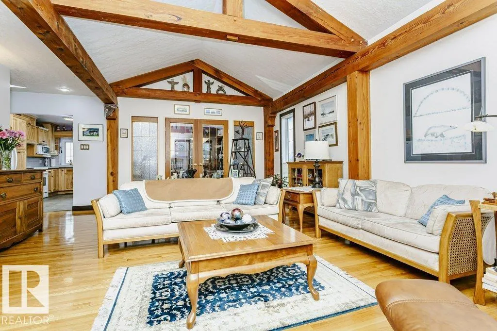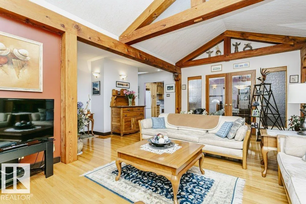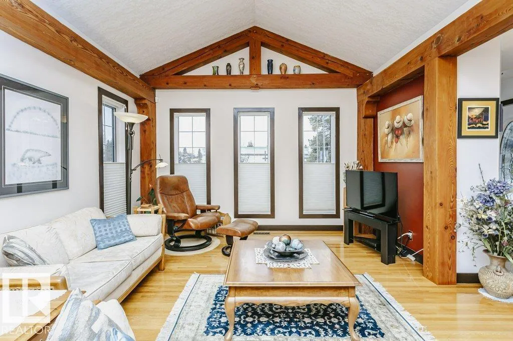Curb Appealing and Immaculate. Expansive bungalow in very desirable Lynnwood features a distinctive open wood beam design that adds architectural character and warmth throughout. This exceptional property offers 4 bedrooms and a functional layout suited for a variety of living needs. The main floor showcases a bright and inviting living space with striking vaulted ceilings and exposed timber frame beams,