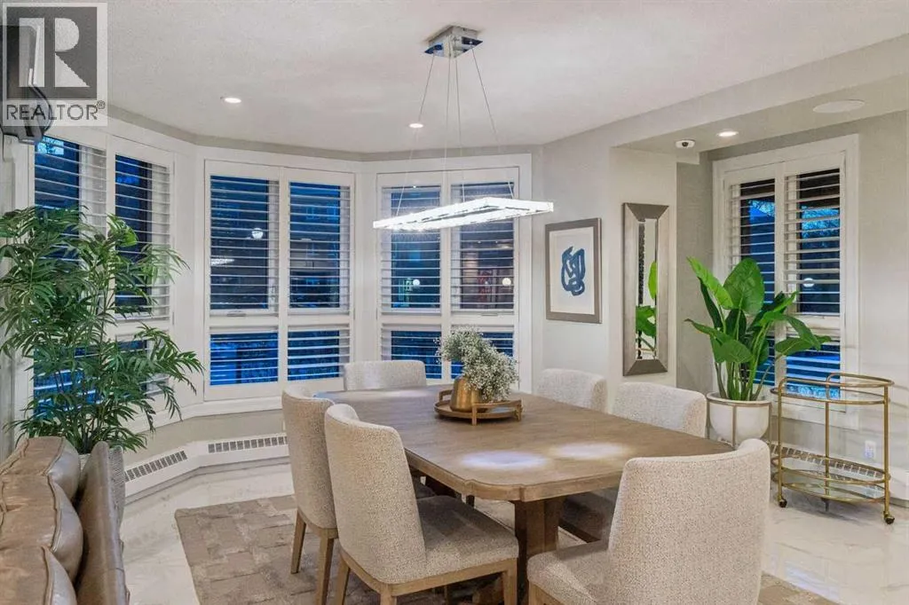 Nestled within the prestigious, gated enclave of Prince’s Island Estates, this exceptional two-storey residence offers an impressive 2,315 square feet of refined living space in the heart of Eau Claire—one of Calgary’s most coveted inner-city communities. Designed to maximize both light and livability, the home features expansive wraparound windows and a sought-after northwest-facing exposure, bathing the interiors in natural light