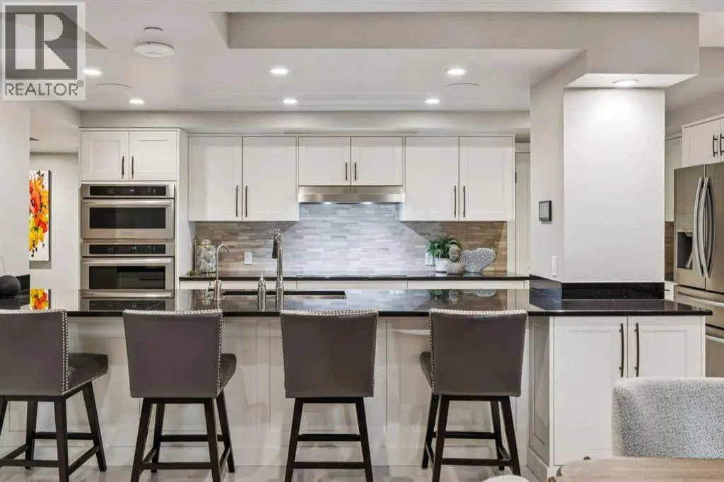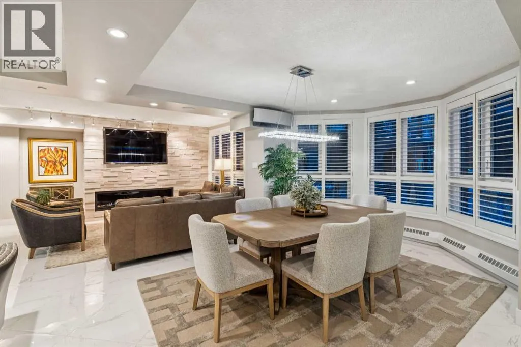 throughout the day, while sleek white marble tile flooring on the main level creates a clean, contemporary foundation that enhances the home’s modern aesthetic. At the heart of the residence, the open-concept galley kitchen is a statement in both form and function, outfitted with premium stainless steel appliances, a five-burner cooktop, granite countertops, and an oversized breakfast bar, making it perfectly suited for both effortless entertaining and everyday living. The adjacent formal living room, anchored by a striking wall-mounted gas fireplace, flows seamlessly into a separate family room, offering versatile spaces for both intimate gatherings and larger occasions, andextends outward to a truly rare wraparound outdoor terrace complete with a dedicated gas line for BBQing and a water connection for gardening—an exceptional extension of the home’s living space. The upper level continues to impress with three generously sized bedrooms and a spacious bonus room, all finished in rich hardwood flooring, while the primary suite serves as a private retreat featuring a walk-in closet and a luxurious five-piece ensuite with dual vanities, a glass-enclosed shower, and a deep soaker tub designed for relaxation. Comfort is further enhanced with three split air conditioning units, ensuring optimal climate control throughout the home. Prince’s Island Estates has undergone extensive recent upgrades, including new vinyl windows, new roofing, updated plumbing, modernized elevators, an enhanced security system, and fully renovated common areas, offe ring the confidence of a substantially refreshed building, while residents enjoy the privacy and security of a gated community along with premium amenities such as two titled underground parking stalls, a private storage unit,indoor heated visitor parking, and a car wash bay. Perfectly positioned just steps from the Bow River pathways, Prince’s Island Park, and Eau Claire’s finest shops and dining, this residence offers an unparalleled lifestyle—combining the scale and comfort of a suburban home with the convenience of premier inner-city living, with condo fees that include all utilities, delivering both simplicity and exceptional value. (id:64429)