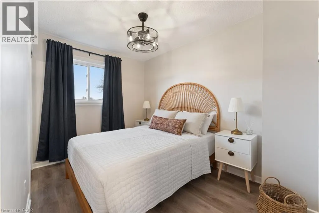 Custom kitchen designed with the chef in mind, featuring Corian countertops, generous counter and workspace, and updated appliances including fridge and dishwasher (2021) and stove (2023). This beautifully updated end-unit condo townhouse offers 4 bedrooms and 2 full bathrooms across approximately 1,253 sq ft. Carpet-free throughout, with updated vinyl flooring on the main floor, stairs, and bedrooms (2023–2024), the home