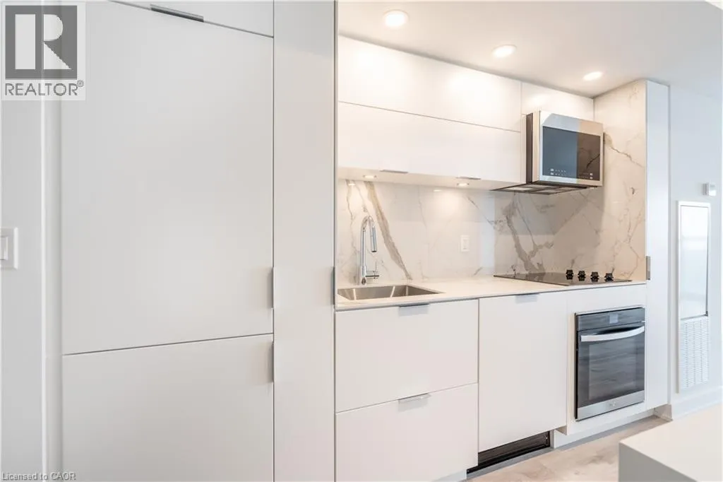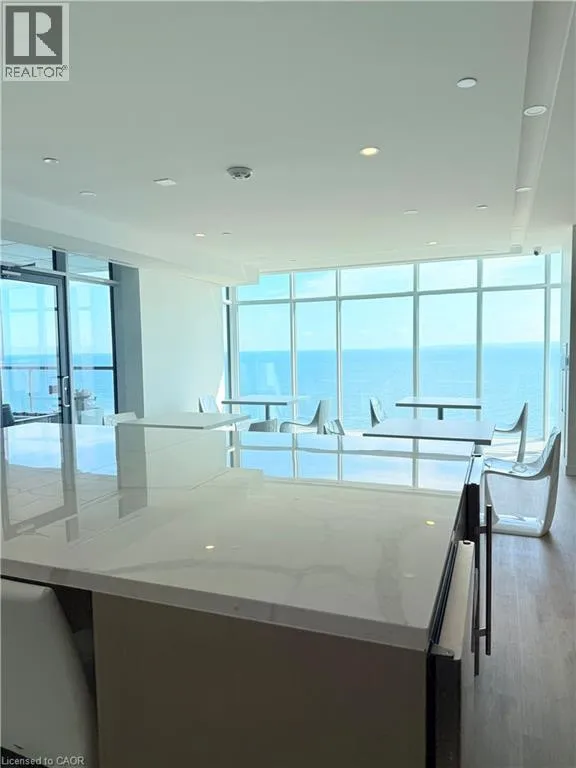 Bright 2-bed, 2-bath condo with direct Lake Ontario views, 928 sq ft of living space, a Juliette balcony, and floor-to-ceiling windows. Enjoy an upgraded kitchen with Whirlpool appliances, porcelain countertops, backsplash, and kitchen island. In-suite laundry and window coverings installed throughout. The primary bedroom features lake views, double closets, and a 4-piece ensuite, while the second bedroom includes double closets
