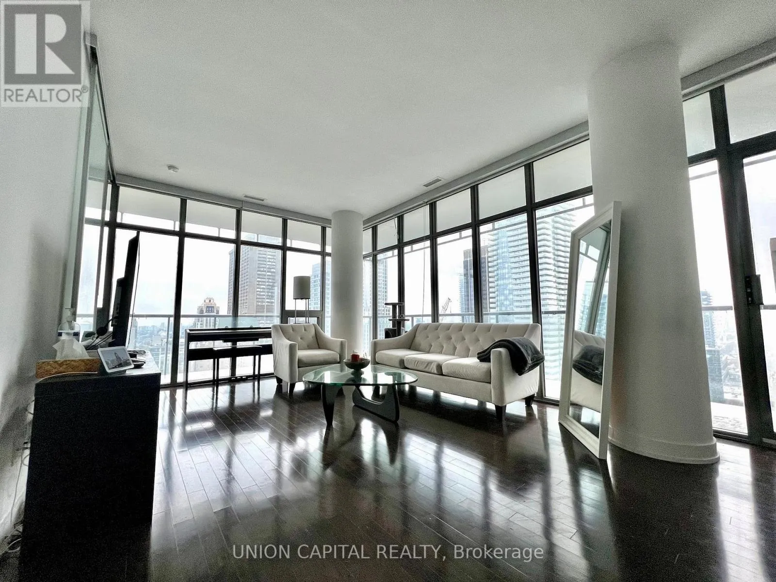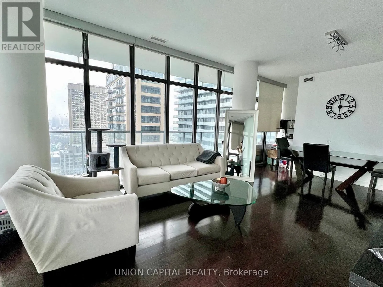 Experience elevated downtown living at Casa Condominium in the heart of Yorkville. This bright, open-concept 2-bedroom corner suite offers 807 sq ft plus a 237 sq ft wrap-around balcony with stunning sunset views-perfect for entertaining. Featuring 9-ft ceilings, floor-to-ceiling windows, and hardwood floors throughout, the space is filled with natural sunlight. Functional layout with full bathrooms and seamless living/dining flow.