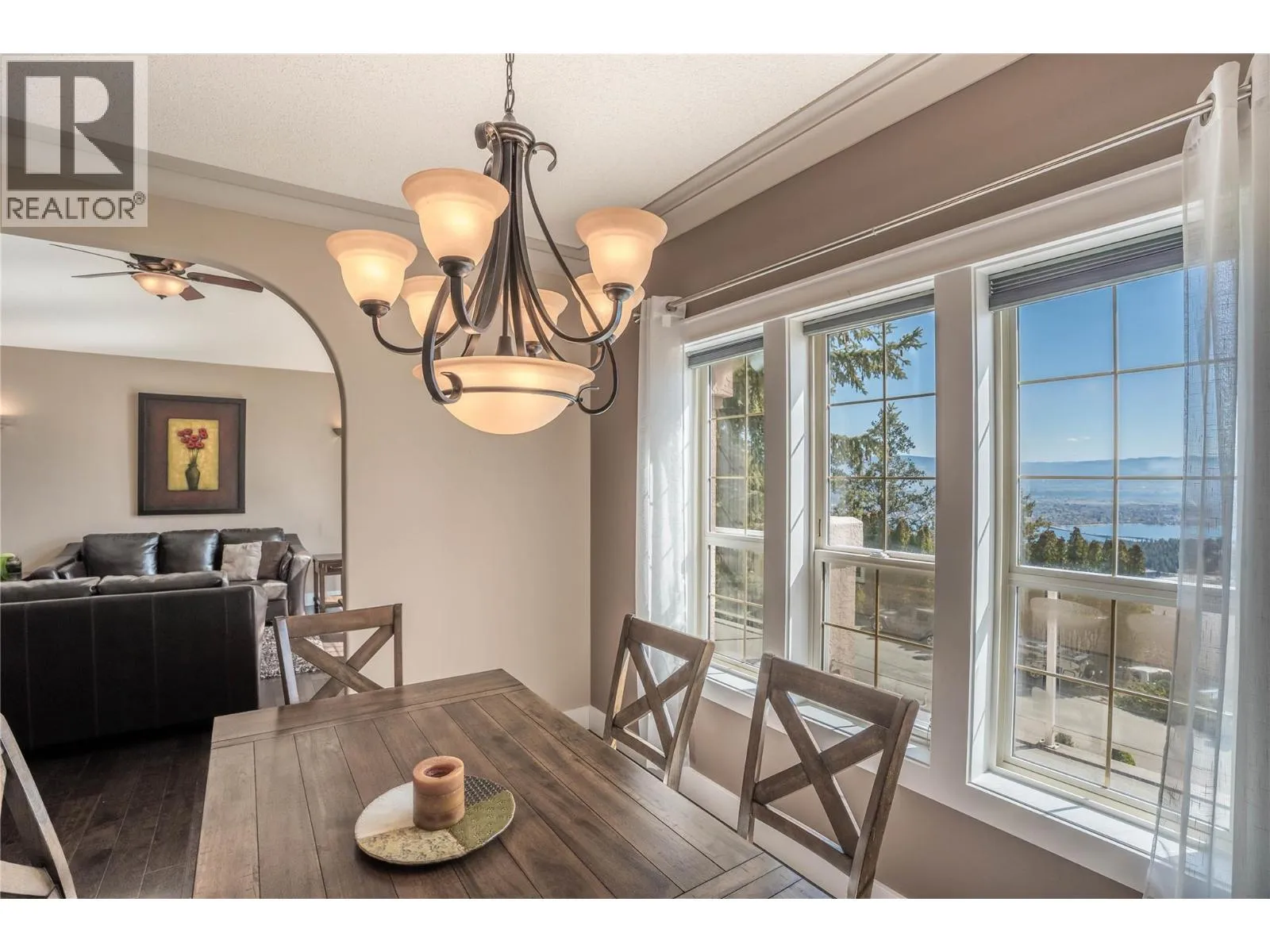 Welcome to 1751 Keloka Drive—an exceptional 4-bedroom, 3-bathroom family home showcasing picturesque lake and mountain views from both levels. Set on a generous 0.32-acre lot, this updated residence reflects true pride of ownership throughout. Step into the inviting foyer, featuring heated travertine tile, and immediately feel at home. The upper level offers a spacious living room with vaulted ceilings, a