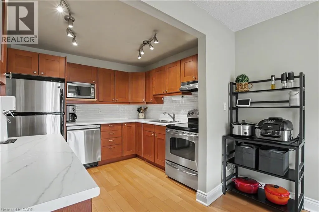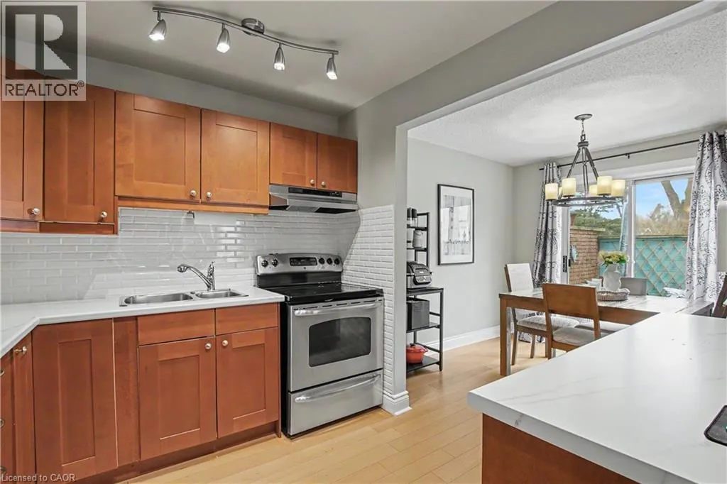 Introducing this charming 3 bed, 1.5 bath townhome in south Aldershot. Features include a bright kitchen with stainless steel appliances, a new backsplash, and updated countertops. A convenient passthrough window connects the kitchen to the cozy living room, creating an open and inviting flow, while the dining area offers a walkout to a private patio; perfect for relaxing or hosting