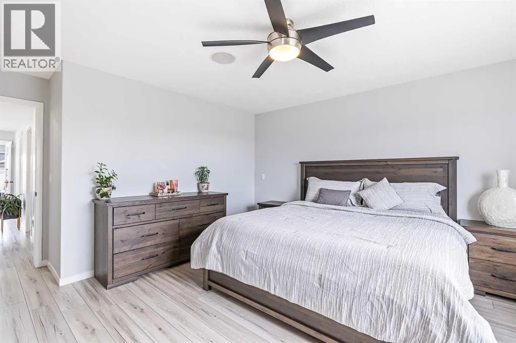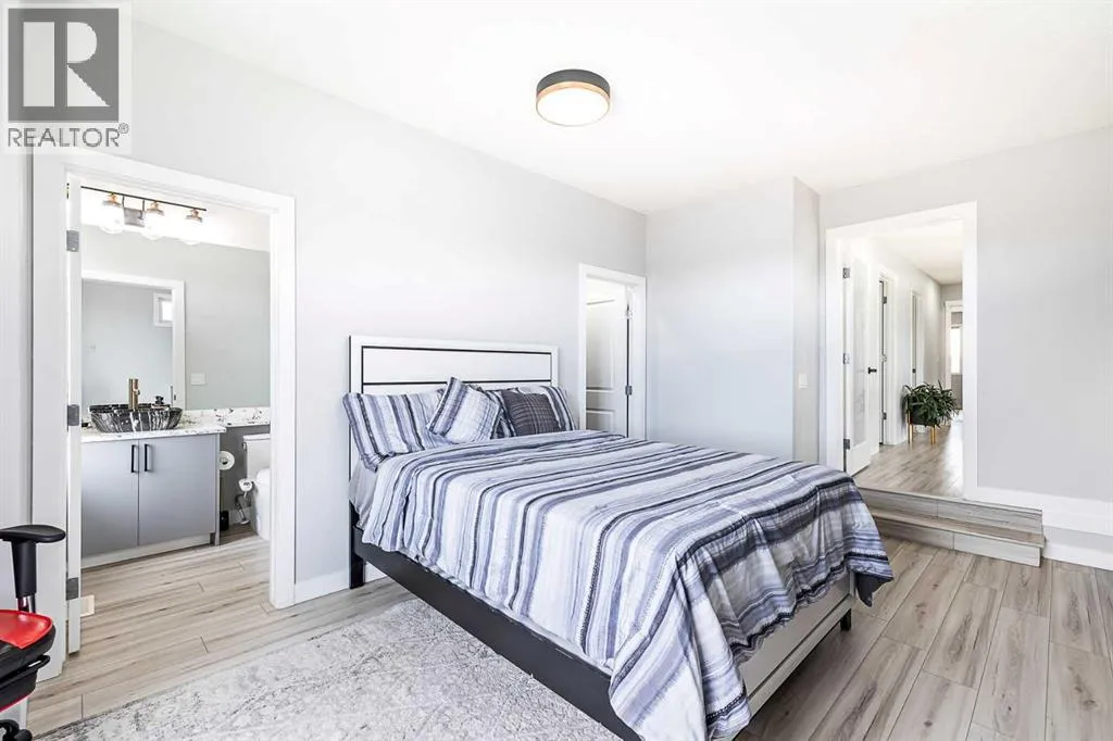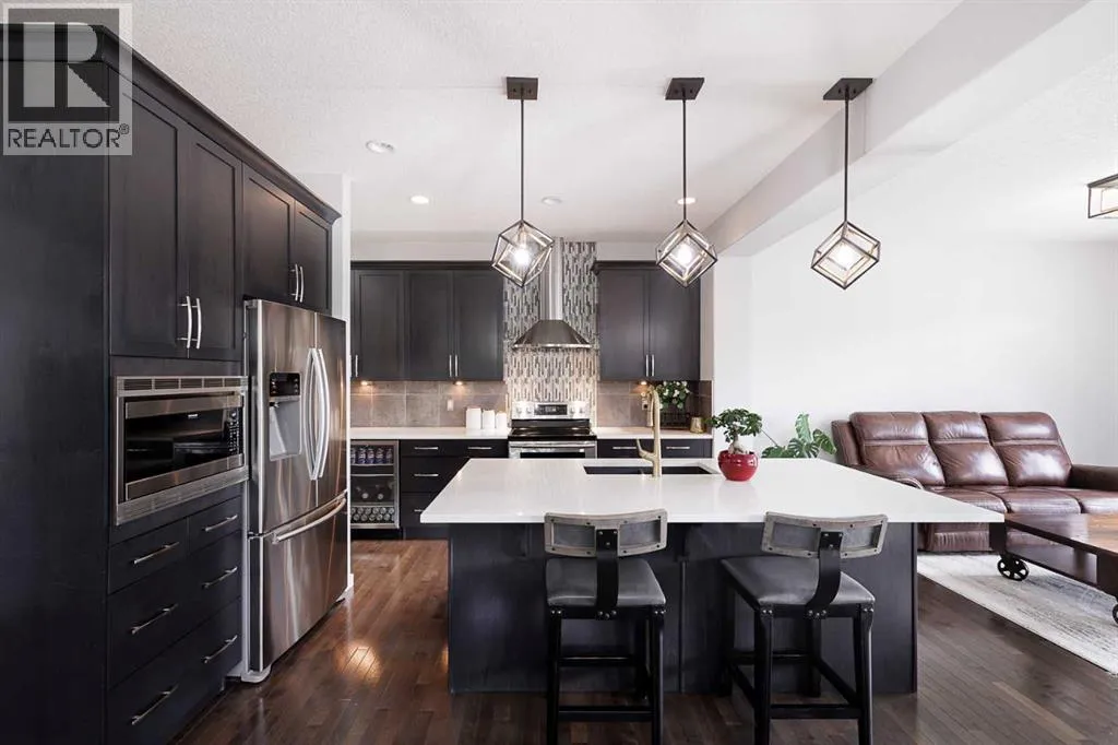 light. The primary kitchen is a masterpiece with quartz countertops, upgraded lighting fixtures, a massive center island that comfortably seats 4, a wine fridge, and extended cabinetry. For the serious cook or those hosting large events, the current owners have added:A Spice Kitchen – Discreetly located off the main kitchen, complete with a gas range, sink and dedicated fridge.Secondary Garage Kitchen – A clever addition in the garage corner, designed specifically to manage heavy-duty cooking for large family celebrations.Entertaining Space – A spacious family room with a gas fireplace and a full integrated sound system.Upper Level: Dual Primary Suites – The upper floor has been expertly reconfigured to maximize comfort and privacy. The Original Primary Suite features a spa-like ensuite with granite countertops on a double vanity and a massive walk-in closet.A New 2nd Primary Suite: The former bonus room has been professionally converted into a second full primary suite, complete with its own private ensuite and walk-in closet.Two more generous bedrooms and a well-appointed main bath complete this thoughtfully designed level.Basement & Outdoor Living – The fully finished basement adds even more versatility with a massive living area (currently used as a bedroom) and an oversized bedroom, bringing the total to 6 bedrooms in the home.Stepping outside, the west-facing backyard is an entertainer’s paradise, featuring professionally completed concrete patio, fencing, and lush landscaping. The double attached garage is not just for parking; it’s equipped with a natural gas heater for year-round comfort.Location & Recent Maintenance: New roof and siding (2026); wood fence replaced (2021). Prime Location situated steps away from several schools, including the Skyview Ranch Elementary/Middle School.With dual primary suites comprising 6 bedrooms, and a triple-kitchen setup, this is a very rare find specifically tailored for the modern, extended family. Message me to arrange a showing if you are not already working with a REALTOR. (id:62650)