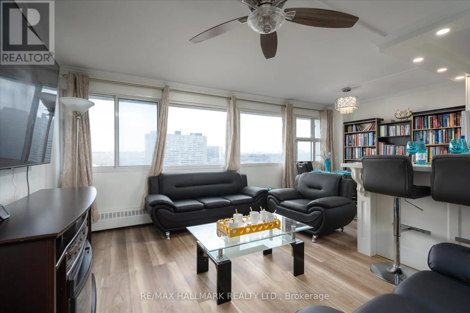 Experience stylish urban living in this rarely available, professionally renovated 699 sq.f. open-concept suite. Bright and inviting, this home features massive windows that fill the space with natural light and offer serene views of the lush treetops of the Don Valley. The thoughtfully designed custom kitchen is the heart of the home, complete with a large island, quartz countertops and
