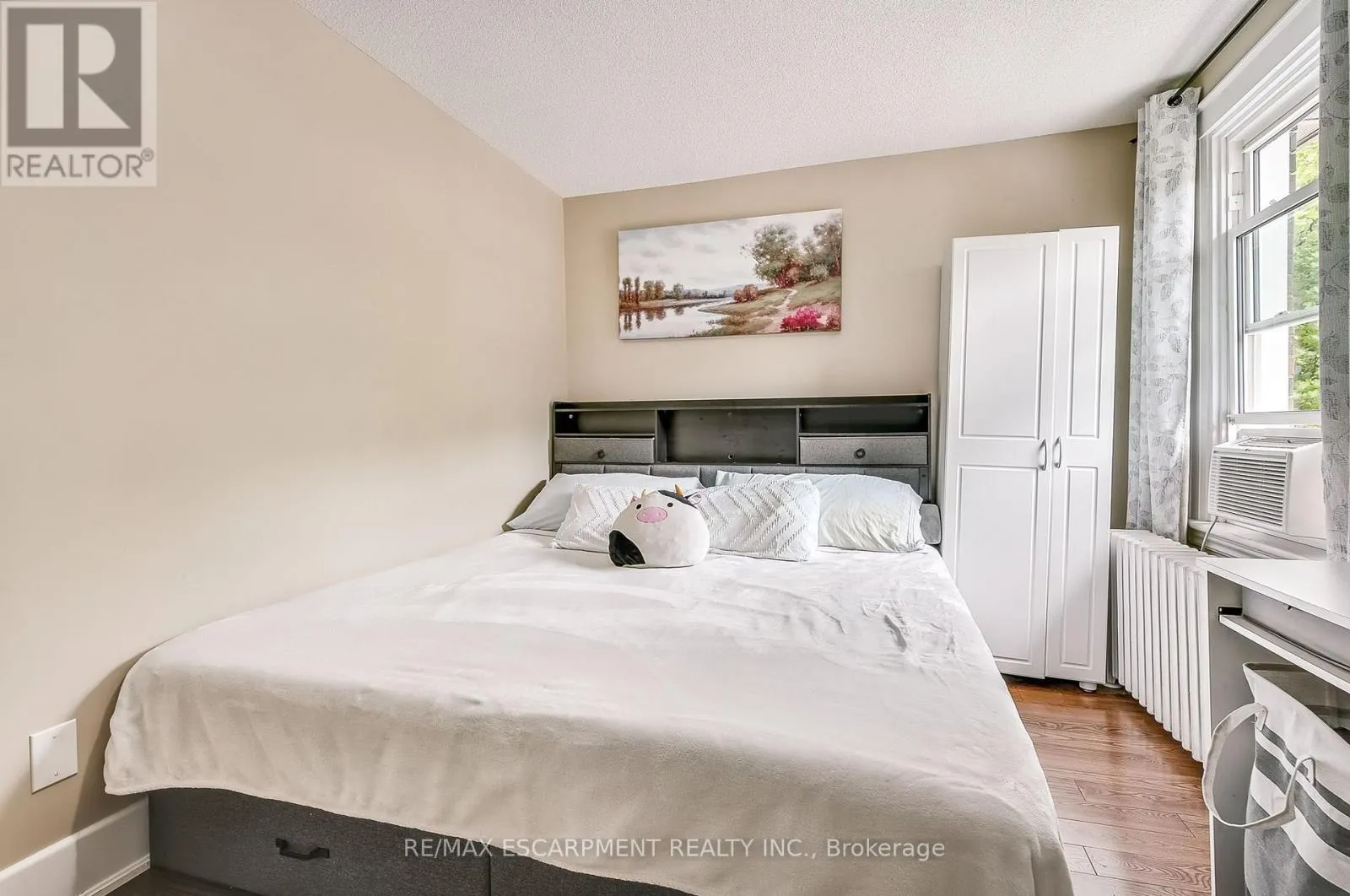 Fabulous 2 Bedroom Condo with Escarpment Views! Bright and spacious approx. 950 sqft. top-floor corner unit offering stunning west and south-facing views over the city and escarpment. This beautifully renovated condo features hardwood flooring throughout, a large sun-filled living room, separate dining area, and a functional kitchen with laundry hook-up. Enjoy two generous bedrooms and a full 4-piece bath. Permit
