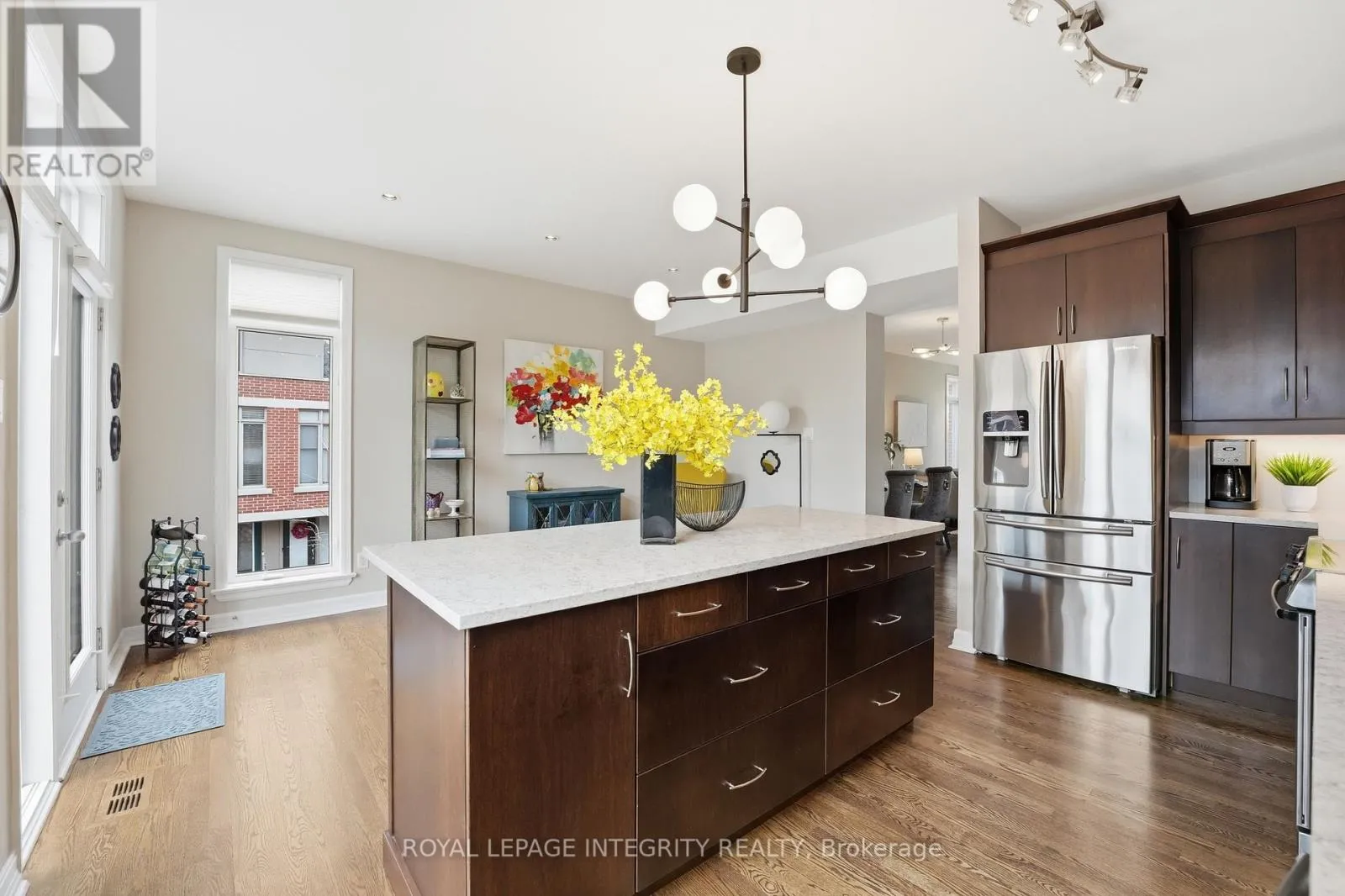 This Uniform-built end unit townhouse, designed by renowned architect Barry Hobin, is set within an exclusive enclave of executive residences in Beaverbrook. Steps to trails with easy access to highway or transit for an easy commute. You immediately notice the natural light-large windows, great exposure, and a layout that just lets the light move through the space. The main floor