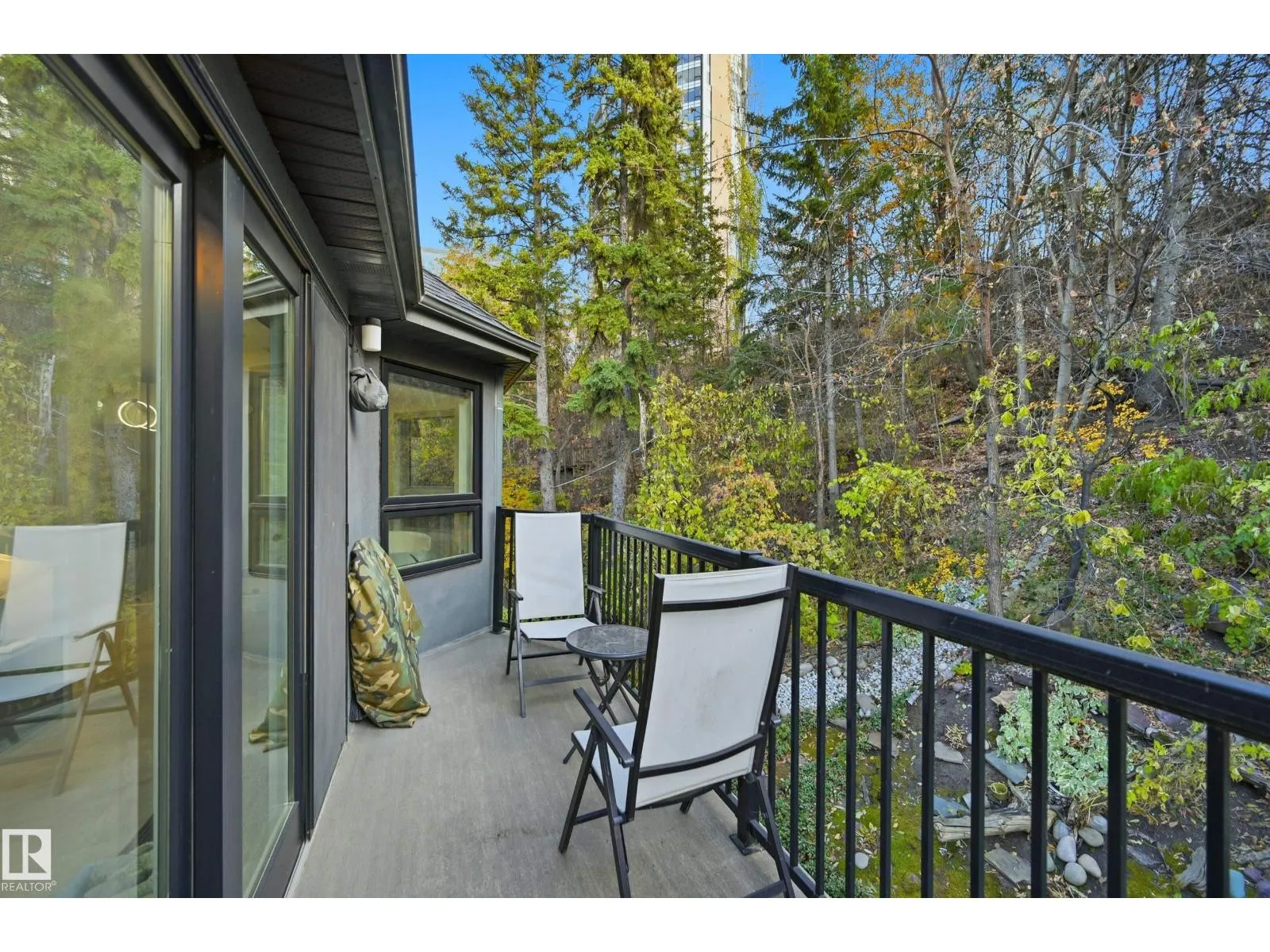 ARCHITECTURAL GEM IN EDMONTON’S RIVER VALLEY! Tucked into the quiet enclave of Skunk Hollow, this modern home blends thoughtful design with rare privacy. Rebuilt from the frame up in 2007, it offers clean lines, warm natural light, and a calm connection to its ravine setting. Large windows frame views of the trees by day and city lights by night. The