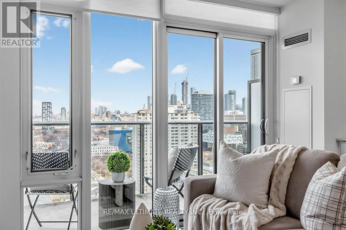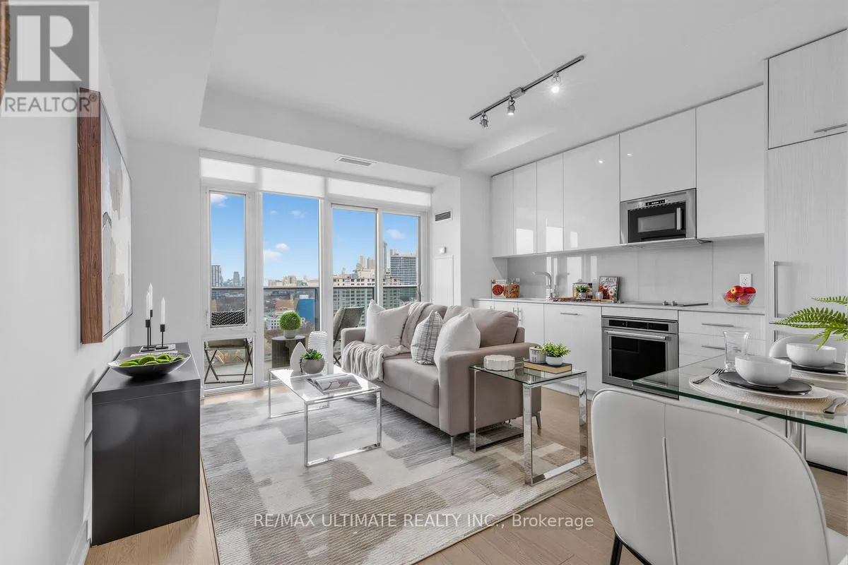 Spectacular unobstructed city views! Stunning light-filled luxury one bedroom condo, freshly painted, smooth ceilings, built-in appliances, wood flooring throughout.Balcony to enjoy morning coffee, ensuite laundry for added convenience. Amazing newer building with gym, pool& rooftop patio,yoga studio, 24 hr. concierge, sauna, media room, dog wash station, rooftop BBQ’s. This one has it all – Walk to fabulous Queen street