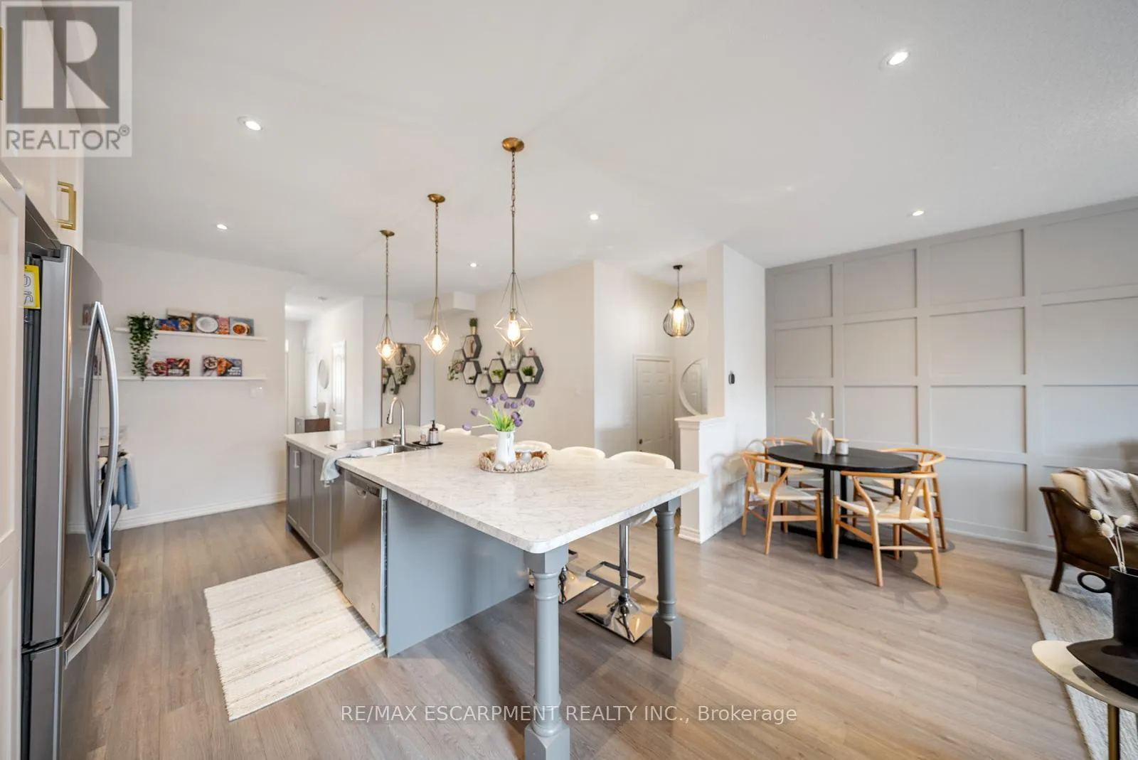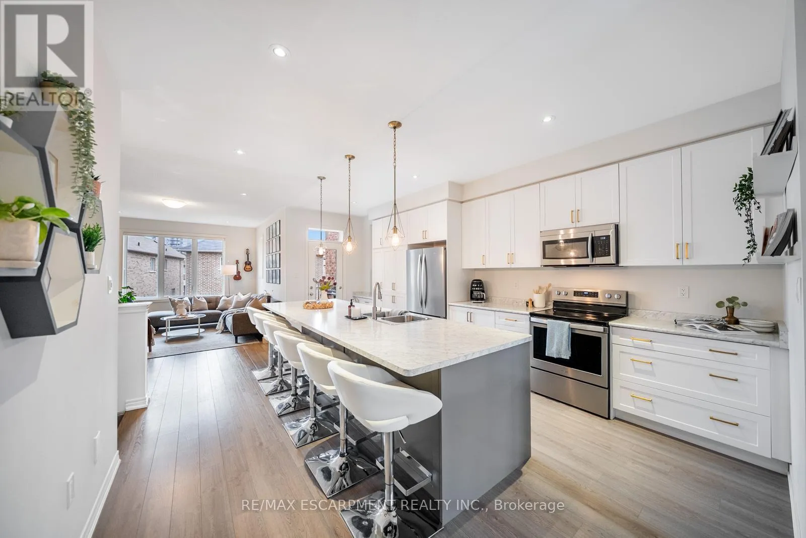 The details here tell a story. Vinyl art framed above the sofa. A hand-lettered name above a little girl’s bed. A backyard that someone obsessed over until it was exactly right. Spanning over 2,100 sq ft of total living space, 223 Skinner Road is not your average Waterdown townhome; it is years of thoughtful upgrades executed with genuine care. The