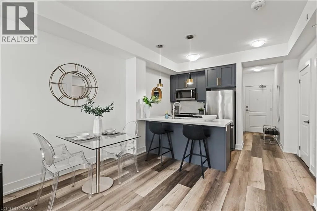 Welcome to Trend Living in Waterdown—where style, convenience, and nature come together. This beautifully designed 1-bedroom + den suite offers 704 sq. ft. of functional living space, plus a private balcony to enjoy your morning coffee or evening unwind. The open-concept layout features an upgraded modern kitchen with a breakfast bar, seamlessly flowing into a bright and spacious living area—perfect