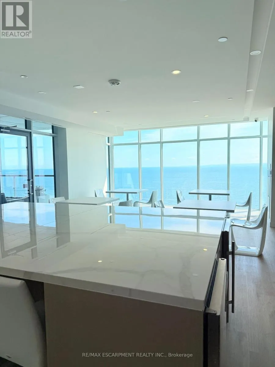 Bright 2-bed, 2-bath condo with direct Lake Ontario views, 928 sq ft of living space, a Juliette balcony, and floor-to-ceiling windows. Enjoy an upgraded kitchen with Whirlpool appliances, porcelain countertops, backsplash, and kitchen island. In-suite laundry and window coverings installed throughout. The primary bedroom features lake views, double closets, and a 4-piece ensuite, while the second bedroom includes double closets