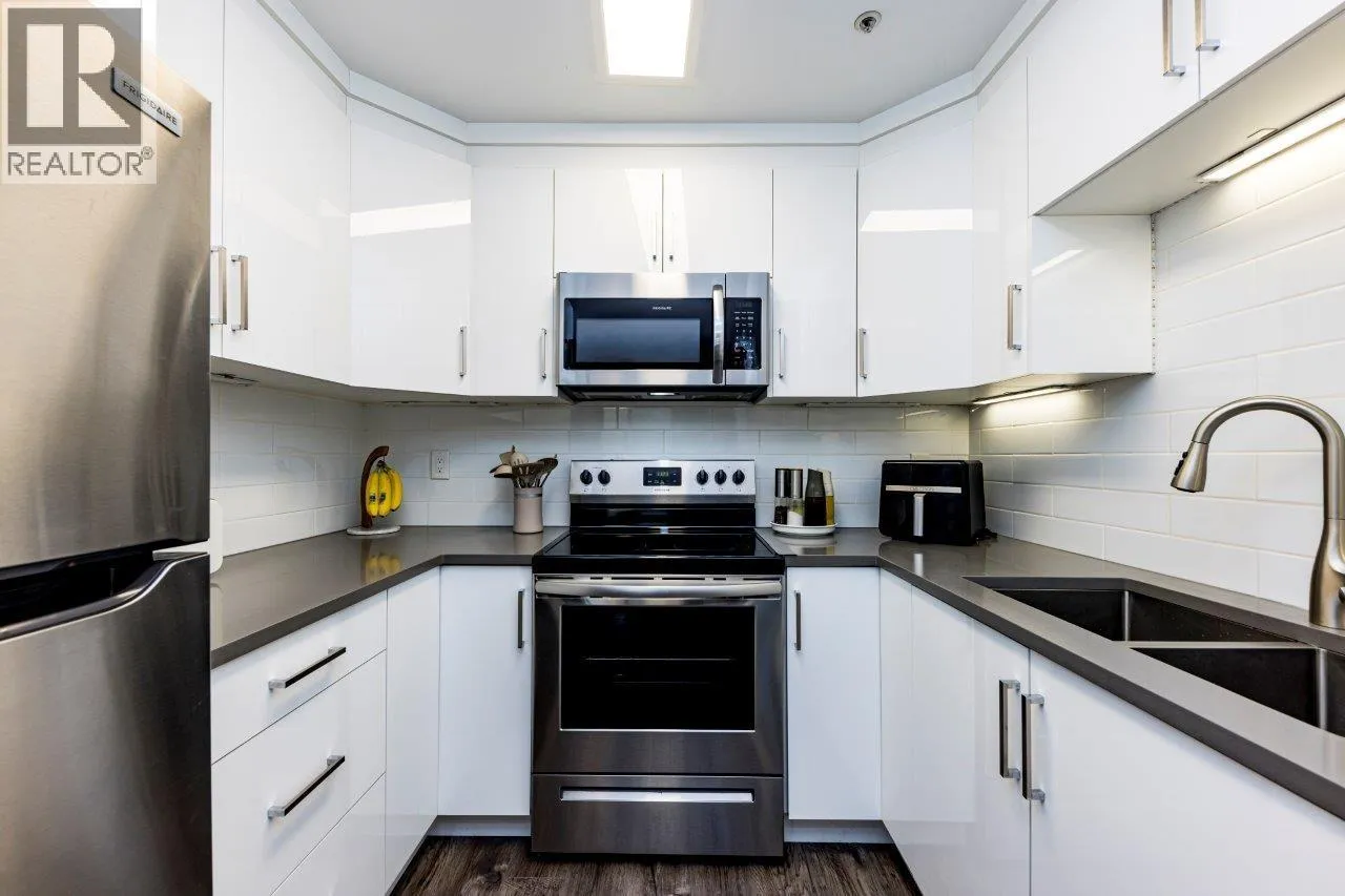 Extra bright and spacious 2 bedroom, 1 bath top floor corner unit suite fully renovated just 5 years ago makes this inviting home completely turn-key. Features stainless appliances, quartz countertops, vinyl plank wood flooring throughout. The large windows & vaulted ceiling immerse you in natural light. Ample sized bedrooms and large bath. Private 129 sq. foot patio is great for