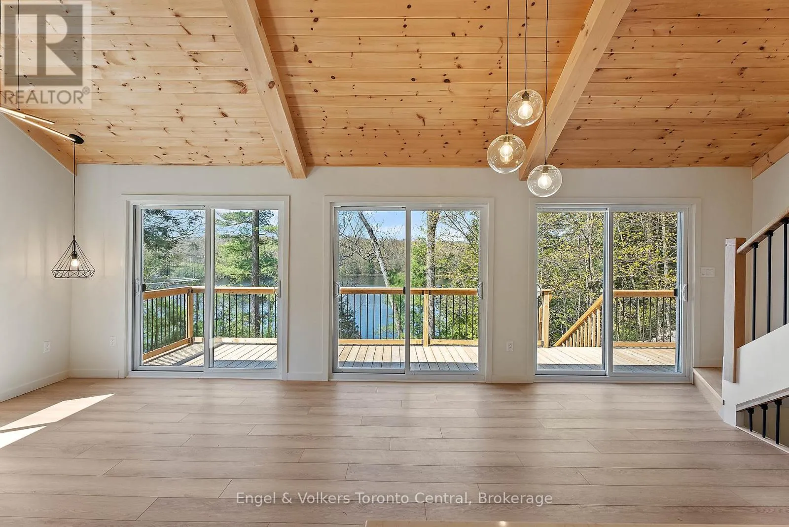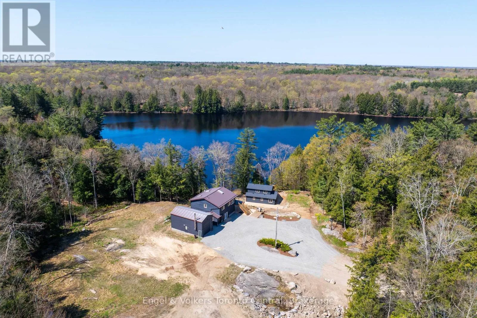 McTaggart Lake – Enjoy coveted summer sunsets from this 2.82-acre waterfront property featuring 192 feet of private shoreline and two fully updated cottages in one exceptional package, perfect for hosting family and guests in comfort and style. Offering 5 bedrooms and 5 bathrooms across both dwellings, this move-in ready property is ideal for extended family, shared ownership, or a year-round