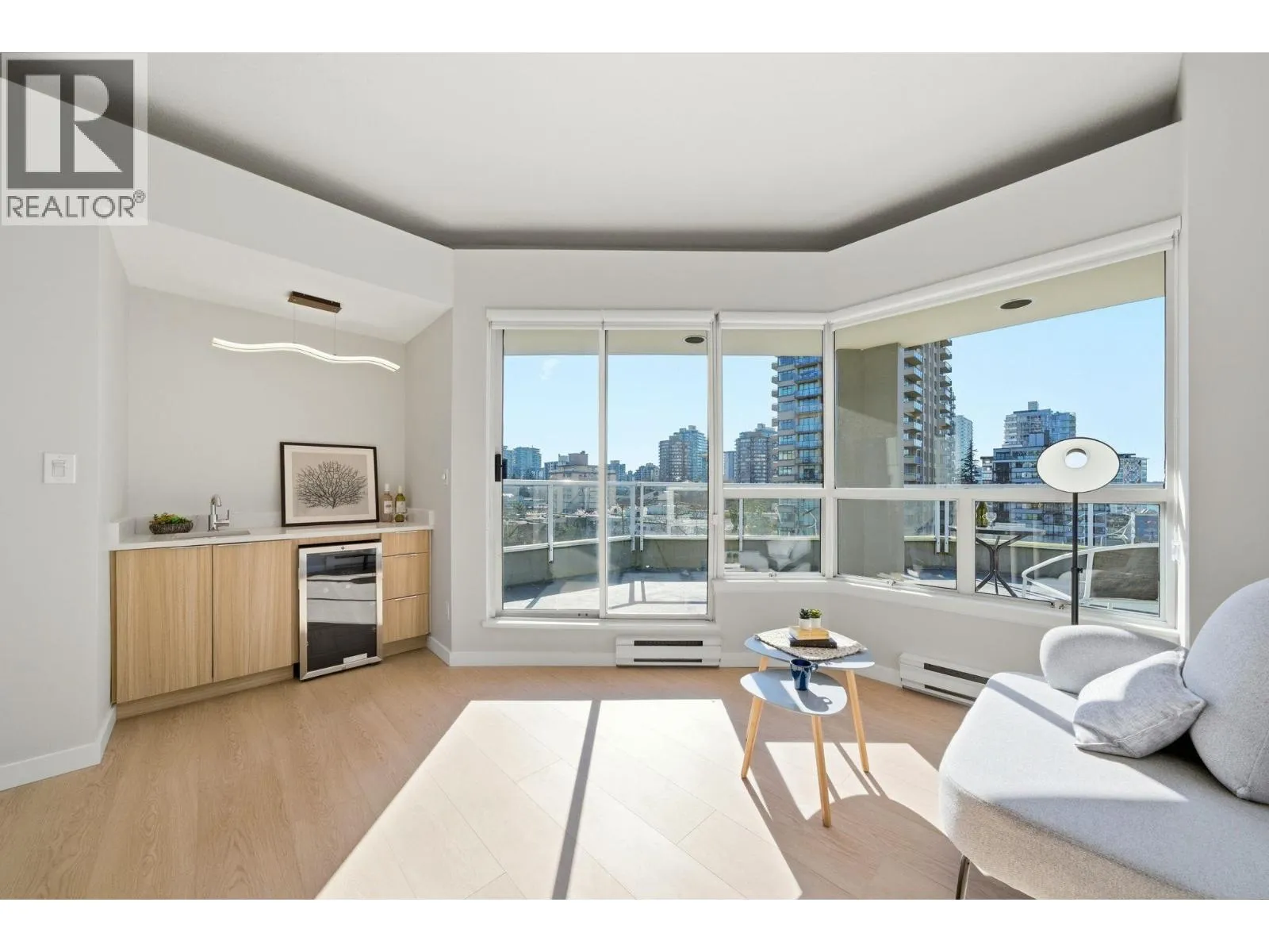 SPECTACULAR WEST END PENTHOUSE WITH OVER 1,100 SQFT OF PRIVATE OUTDOOR SPACE. Nearly 1,550 square feet over two levels with sweeping views of English Bay and the North Shore mountains. Recently renovated in 2025, the home features an updated kitchen with stainless steel appliances and sleek countertops, beautifully upgraded bathrooms, and wide plank vinyl flooring, modern lighting, and high end