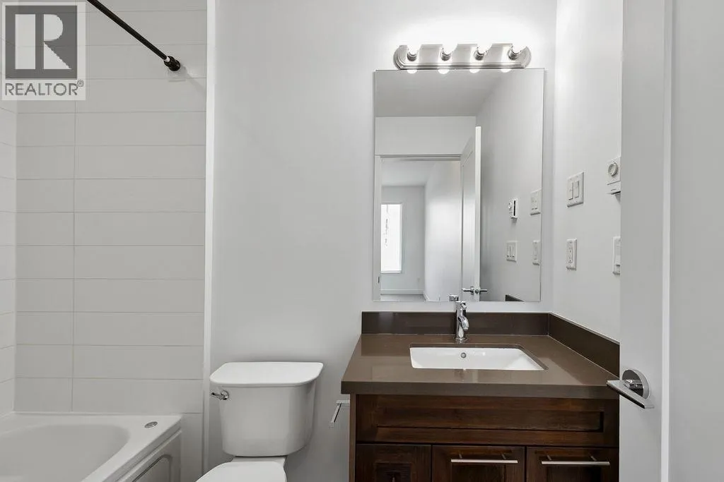 Welcome to this beautifully designed 2 bed, 2 bath + den home in a boutique building with just 34 residences. This bright, open-concept suite features 9′ ceilings, laminate hardwood flooring, and a functional layout with ample storage. The modern kitchen offers quartz countertops, stainless steel appliances, and a full-size washer and dryer. Enjoy a sunny south-facing exposure and a private
