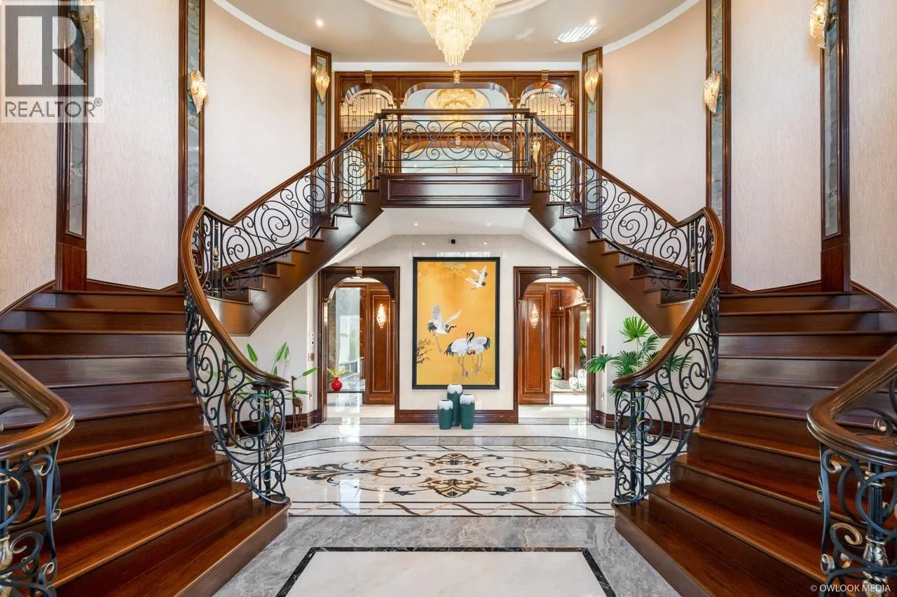 Exquisite French-inspired estate in Richmond’s prestigious Riverdale neighborhood! This luxurious 7,900+ sqft. mansion sits on a beautifully landscaped 21, 588.80 sqft. lot, featuring a private golf putting green, grand circular driveway, and elegant European architectural details. The interior boasts a soaring foyer, custom iron staircase, opulent chandeliers, and a private interior elevator for effortless access to all levels. The gourmet