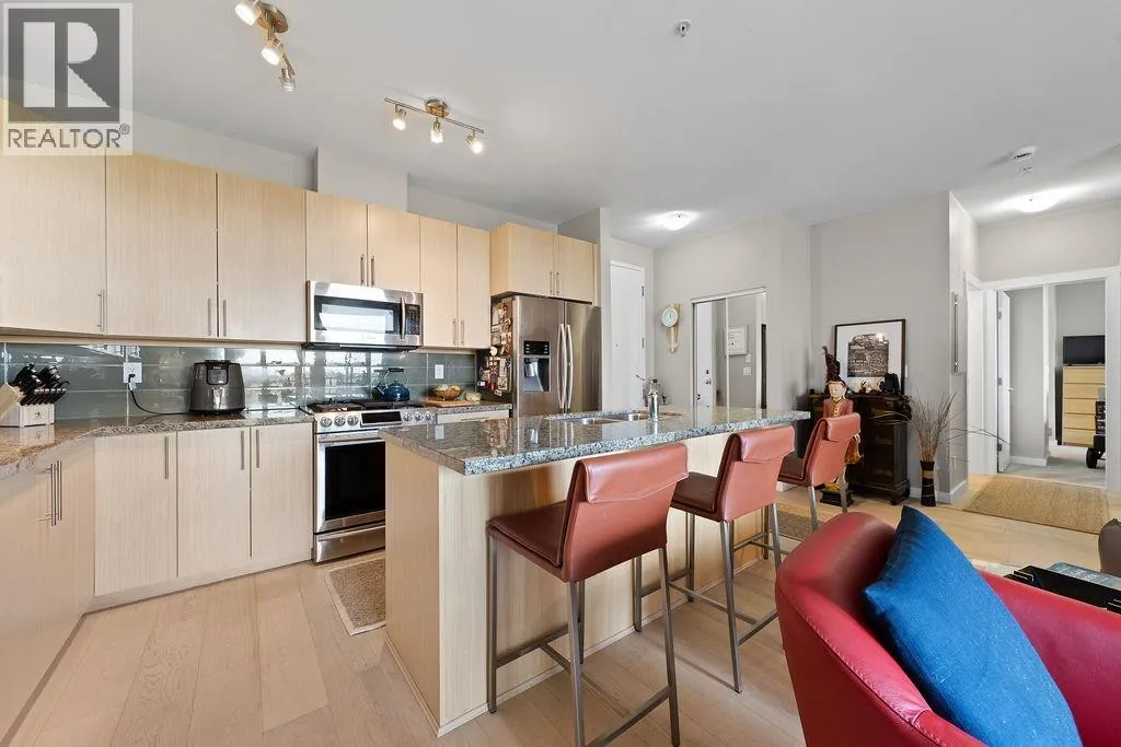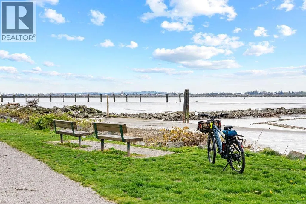 Located in Steveston South´s East Village at London Station, this 2 bedroom, 2 full bathroom condo offers a rare concrete and steel construction in the area. Enjoy a peaceful east-facing outlook over the courtyard and farmland, with two private balconies, including one off the primary bedroom. Features include brand new contemporary hardwood flooring and a gas fireplace. Exceptionally walkable, steps