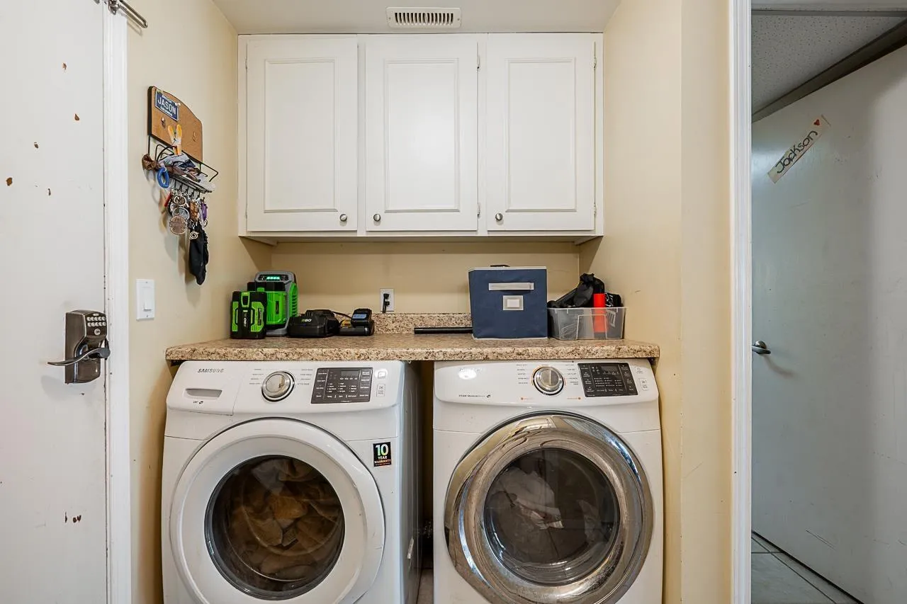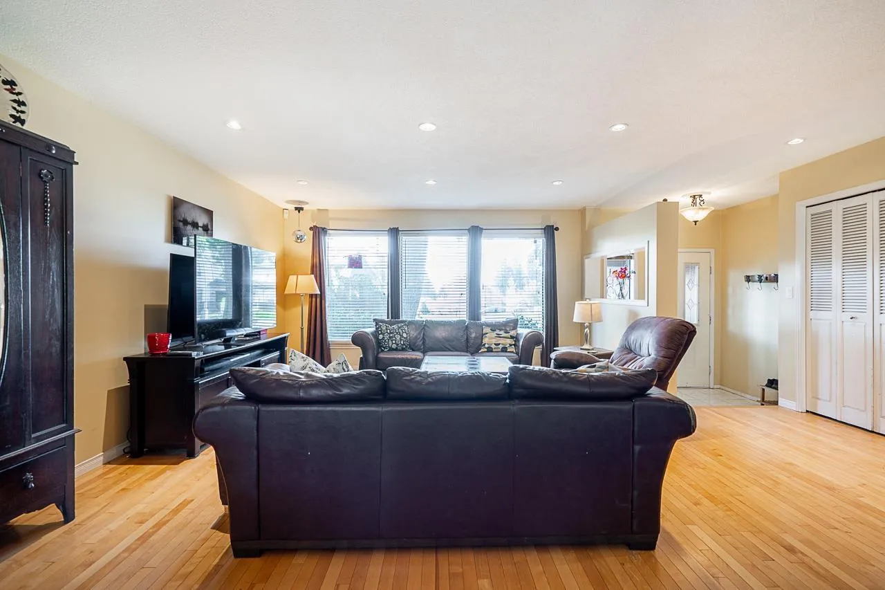 Ocean Park Family Home on a Quiet Street! This well-maintained 3-level split offers 4 bedrooms (3 up, 1 down) and 2.5 baths in a sought-after neighbourhood. Functional layout with adjoining living/dining and a sunken family room-perfect for everyday living. Step outside to a covered stamped concrete patio with skylight and a private hedged backyard-ideal for year-round entertaining. Features include double