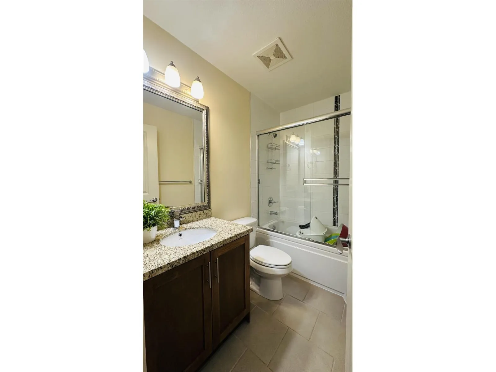 Top-floor 2-bed, 2 bath home in the sought-after SOHO building, complete with two large side-by-side parking stalls. Quiet north-facing unit with 9-ft ceilings, fresh paint, crown mouldings, and beautiful North Shore mountain views. Open layout with granite counters, stainless steel appliances, electric fireplace, and maple cabinetry. Bedrooms are separated for privacy; primary includes a walk-in closet. Well-managed building with low