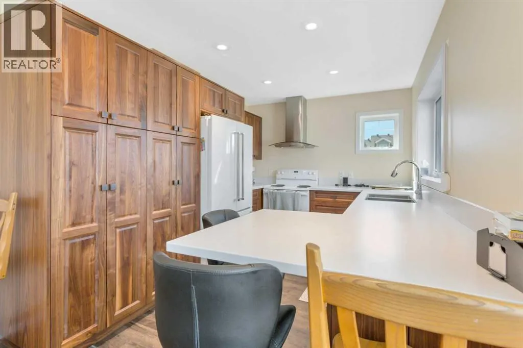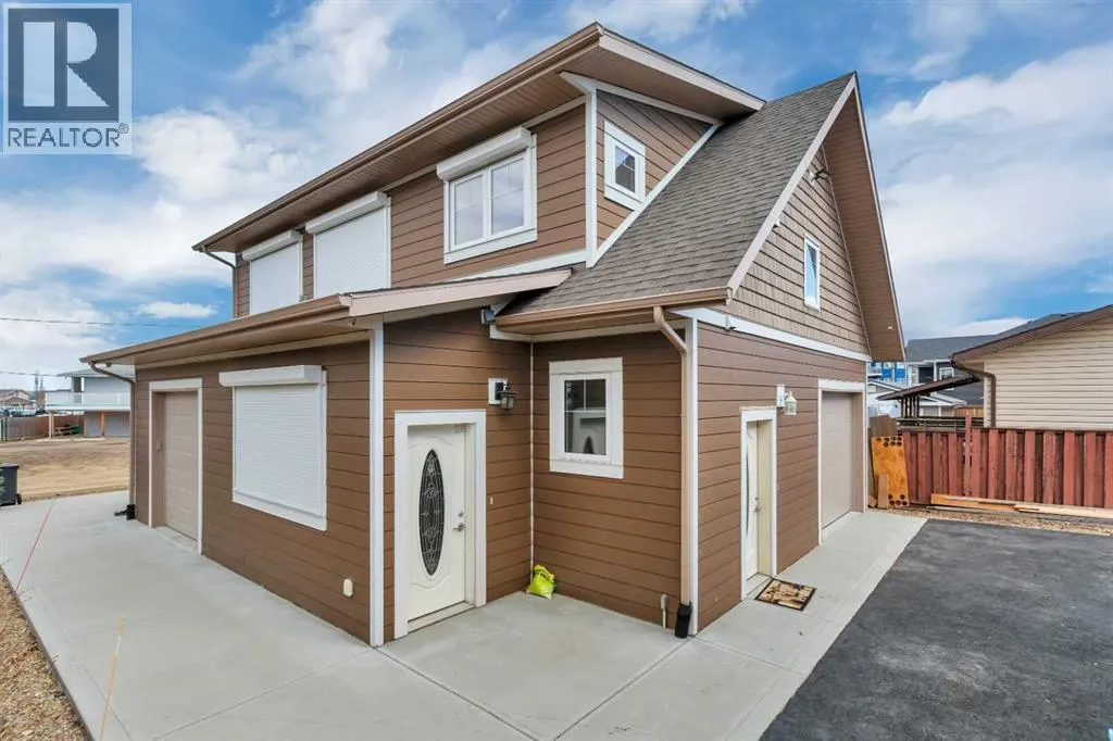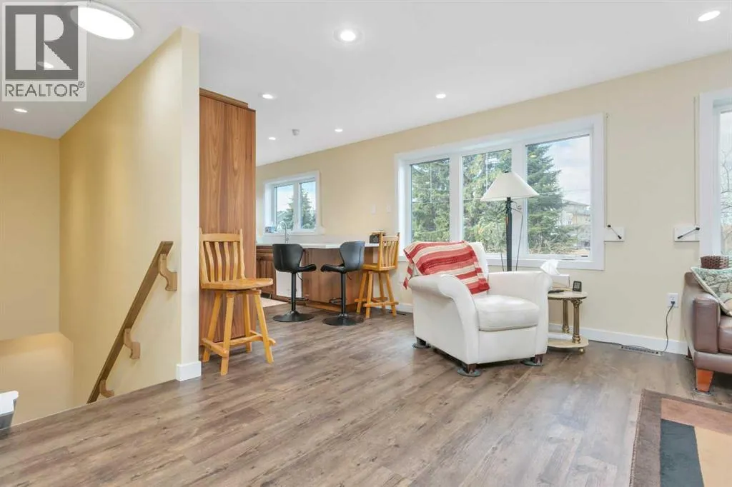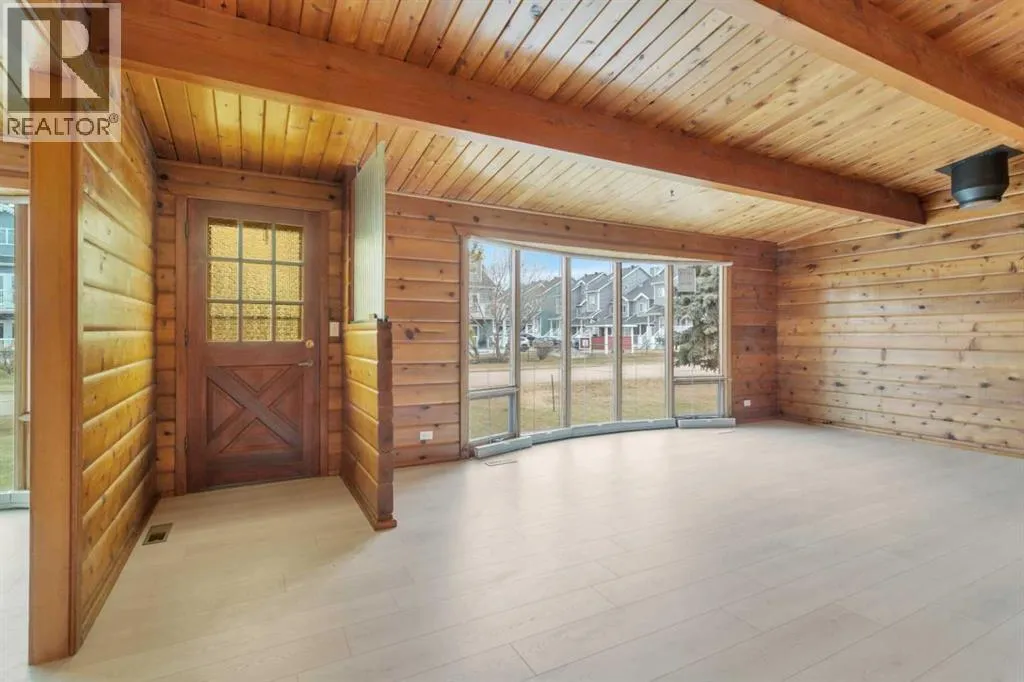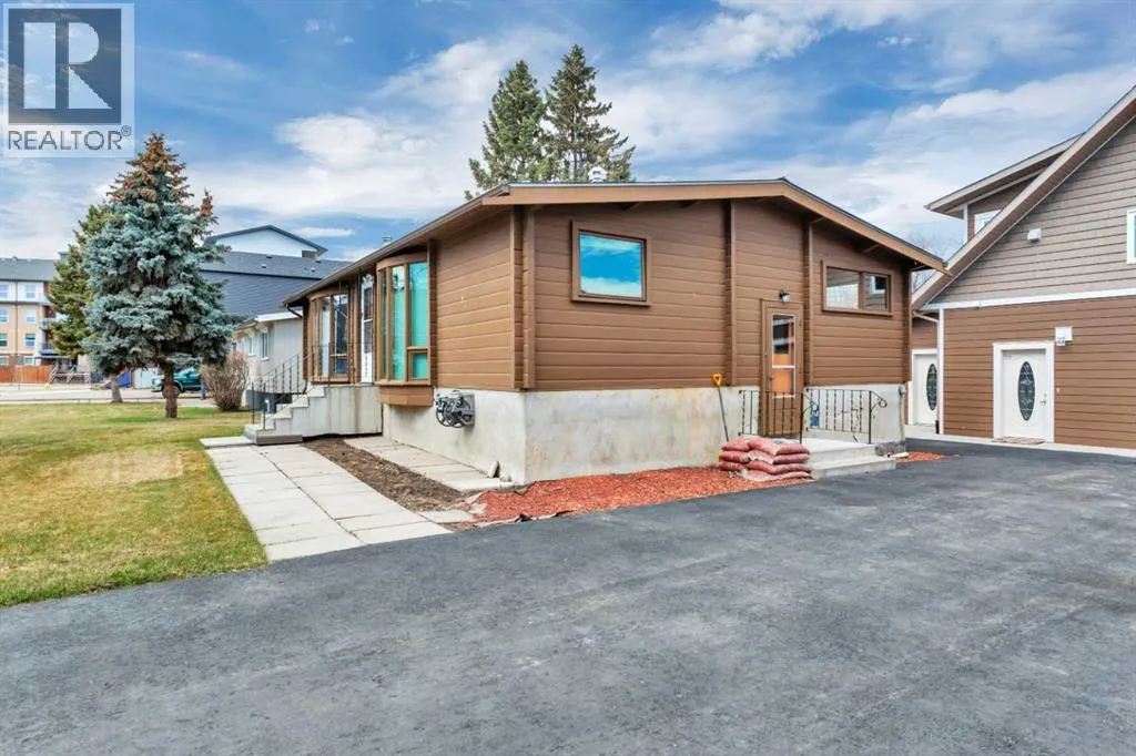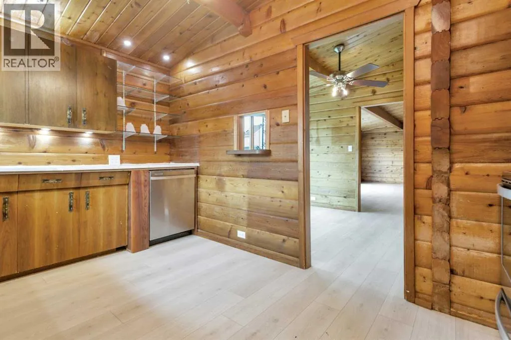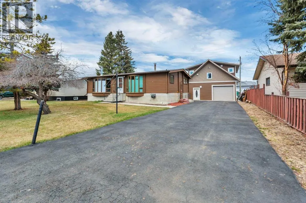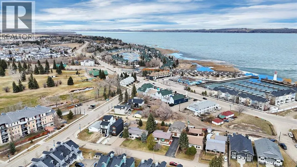 Situated on a spacious 9,750 sq/ft lot in the desirable West Village neighbourhood of Sylvan Lake, this unique property offers exceptional versatility and charm. The 1,208 sq/ft 1971 “log kit” bungalow is paired with a newer (2016) 921 sq/ft triple garage topped by a 1,104 sq/ft legal suite. The bungalow features two bedrooms plus an office with a closet,