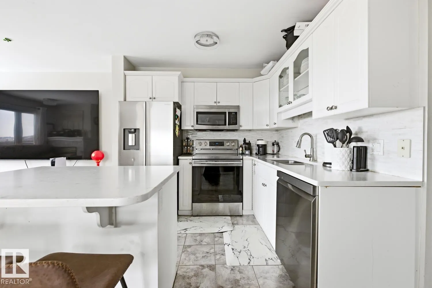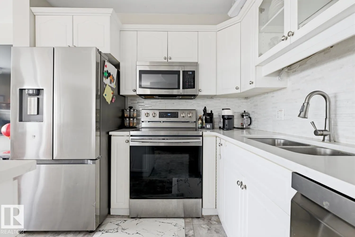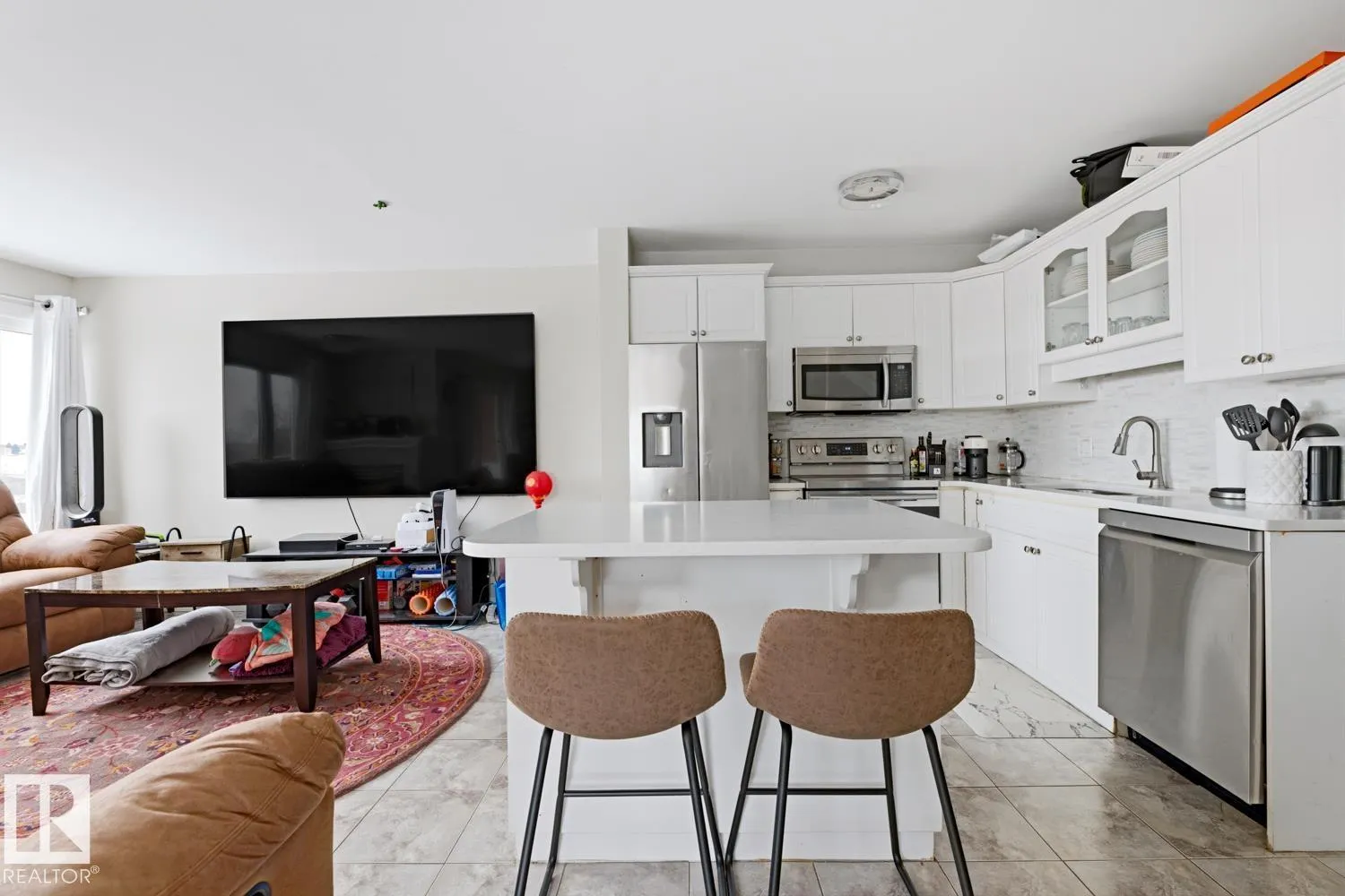 RIVER VALLEY VIEWS – Experience elevated downtown living in this renovated 2-storey end-unit townhouse in Summit in Riverdale. Featuring stunning river valley and skyline views, this modern 2-bedroom, 2-bath home offers an open-concept layout perfect for entertaining. The updated main floor boasts a bright kitchen with island, spacious living room with gas fireplace, and dining area with large windows