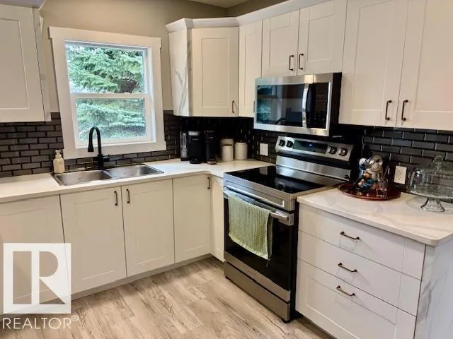 LIKE NEW INSIDE!!!! 2 bedrooms up and 2 bedrooms down(with egress windows), 2 bathrooms (nicely redone), beautiful open concept for the kitchen, living, dining areas, and a huge rec. room in the basement.. This bungalow has all the renos completed for you, newer windows, shingles, flooring, paint, kitchen, bathrooms, and much more. You also have a single detached garage, large
