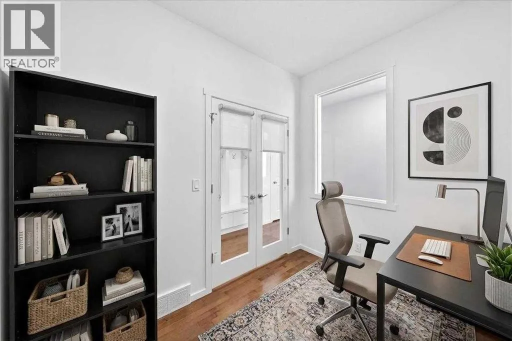 Welcome to 20 Nolancrest Green NW—ideally located on a quiet street overlooking green space with a playground and soccer field, perfect for families and those who value privacy and scenic views. The main floor features built-in cubbies that add both style and practical everyday storage, a bright den/office with French doors – an ideal work-from-home setup, rich hardwood flooring and