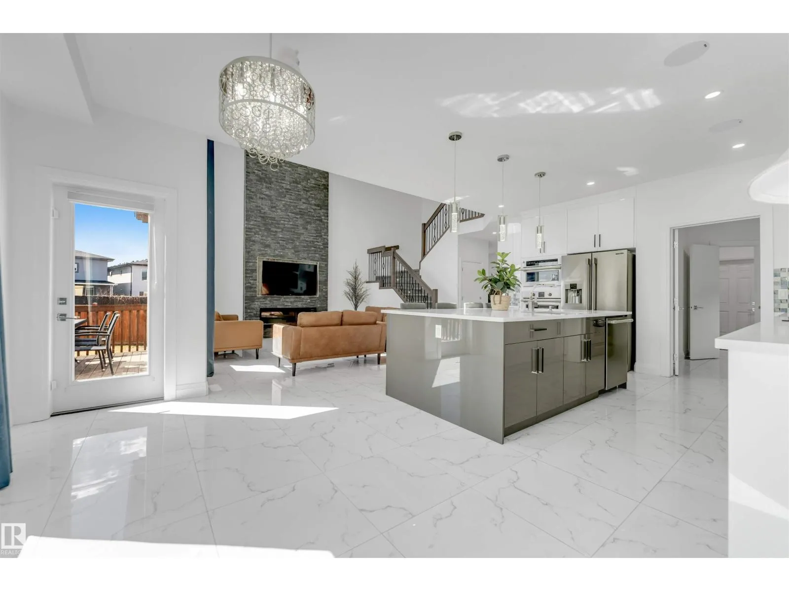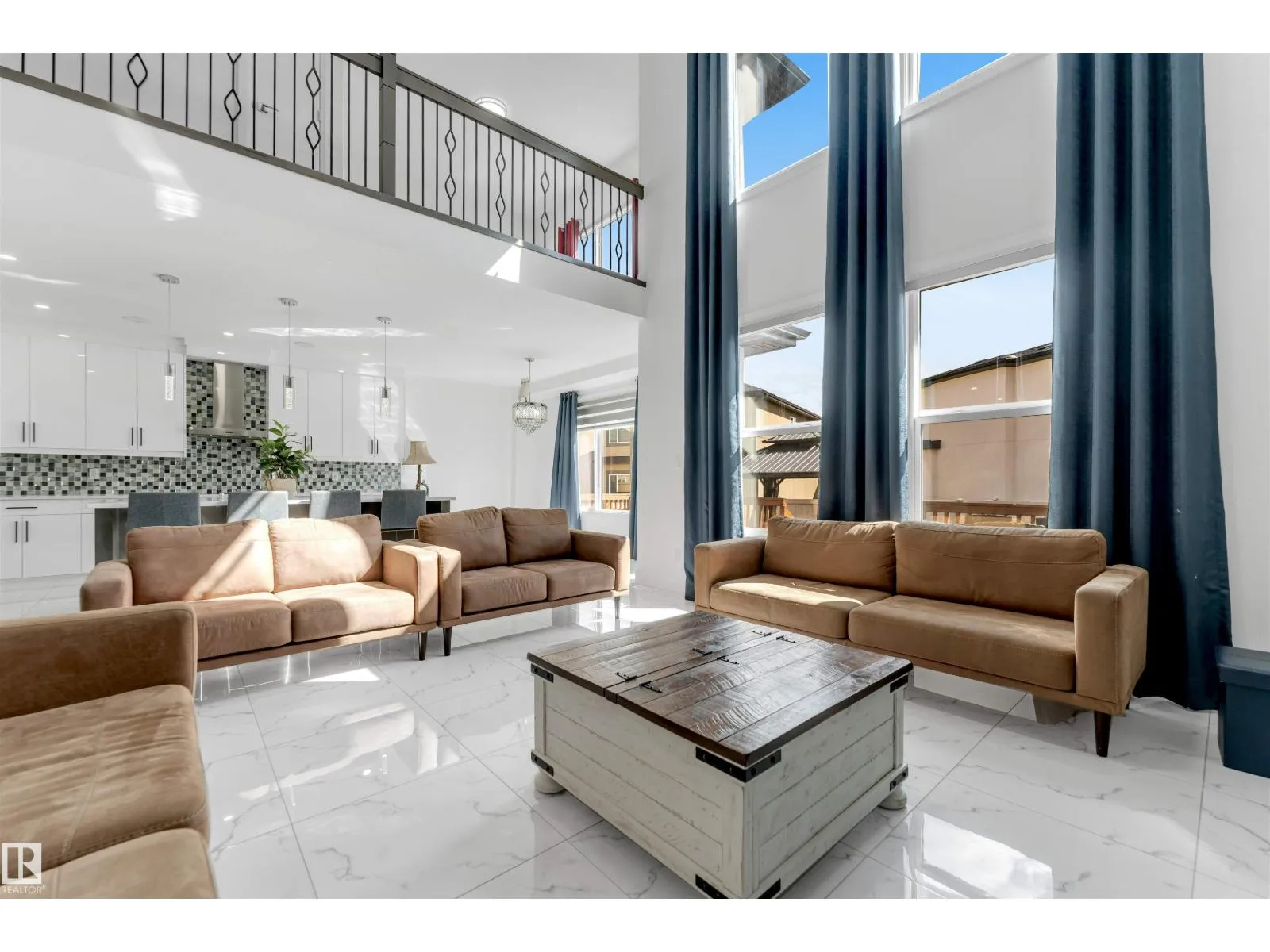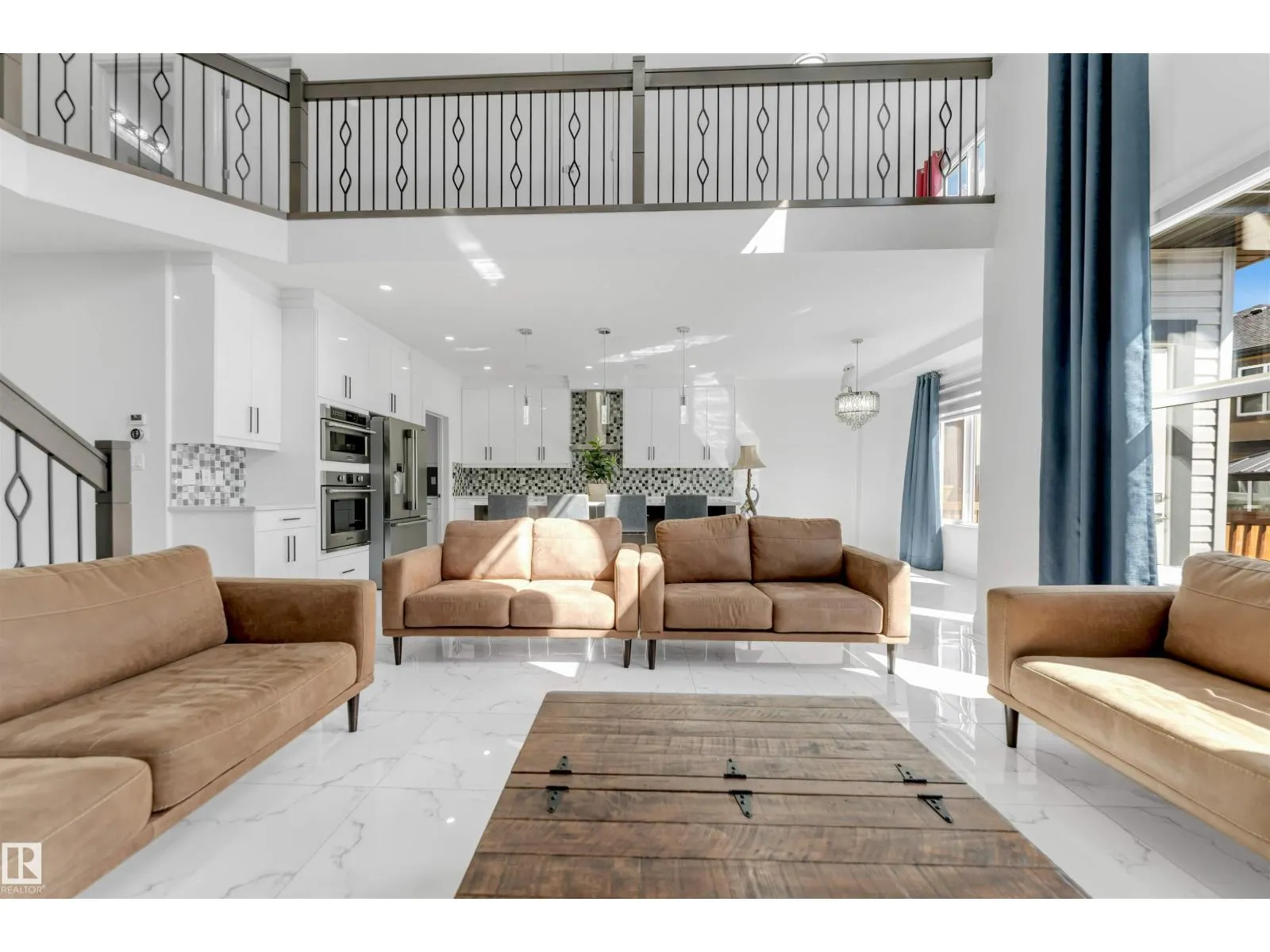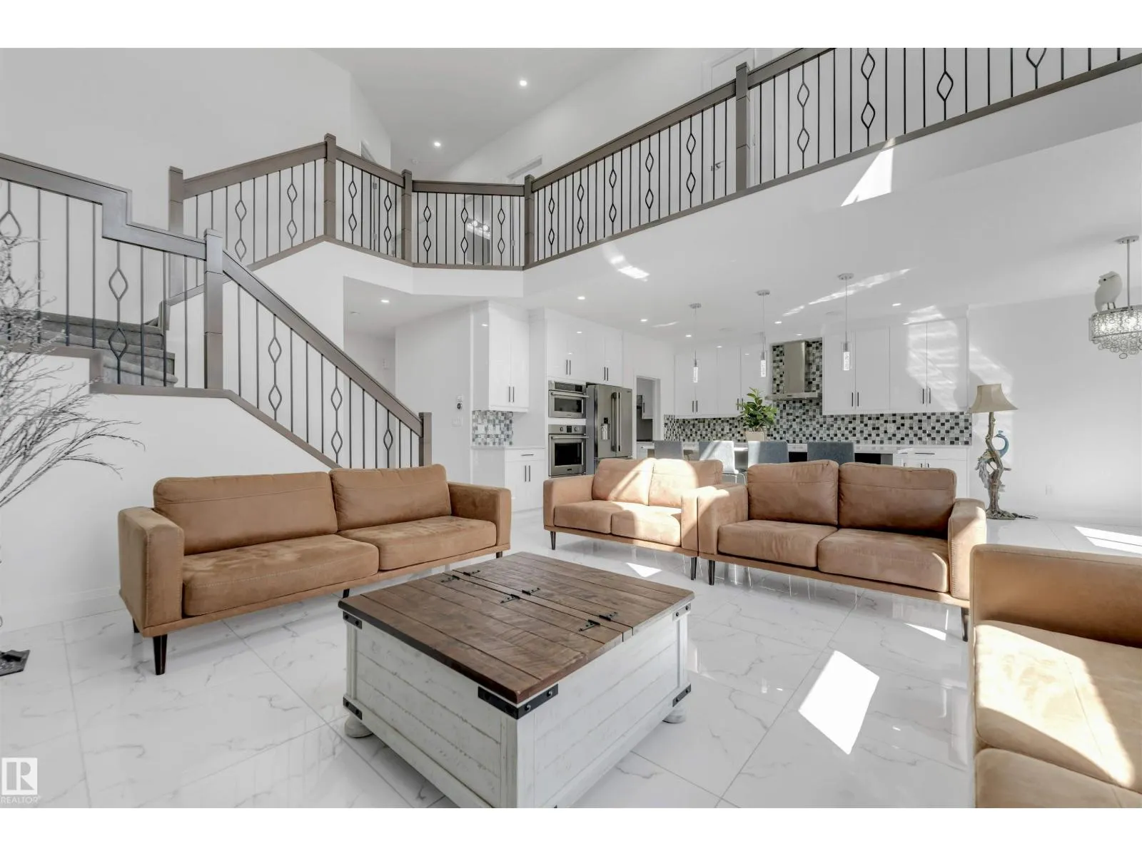 Welcome to this beautiful home featuring two Master bedrooms upstairs, Situated on a massive lot of over 9,000 sq ft. The main floor offers a stunning open-to-below living area, a spacious kitchen with a large island, and a separate spice kitchen equipped with a gas stove. Tile flooring runs throughout the main floor, which also includes a bedroom and