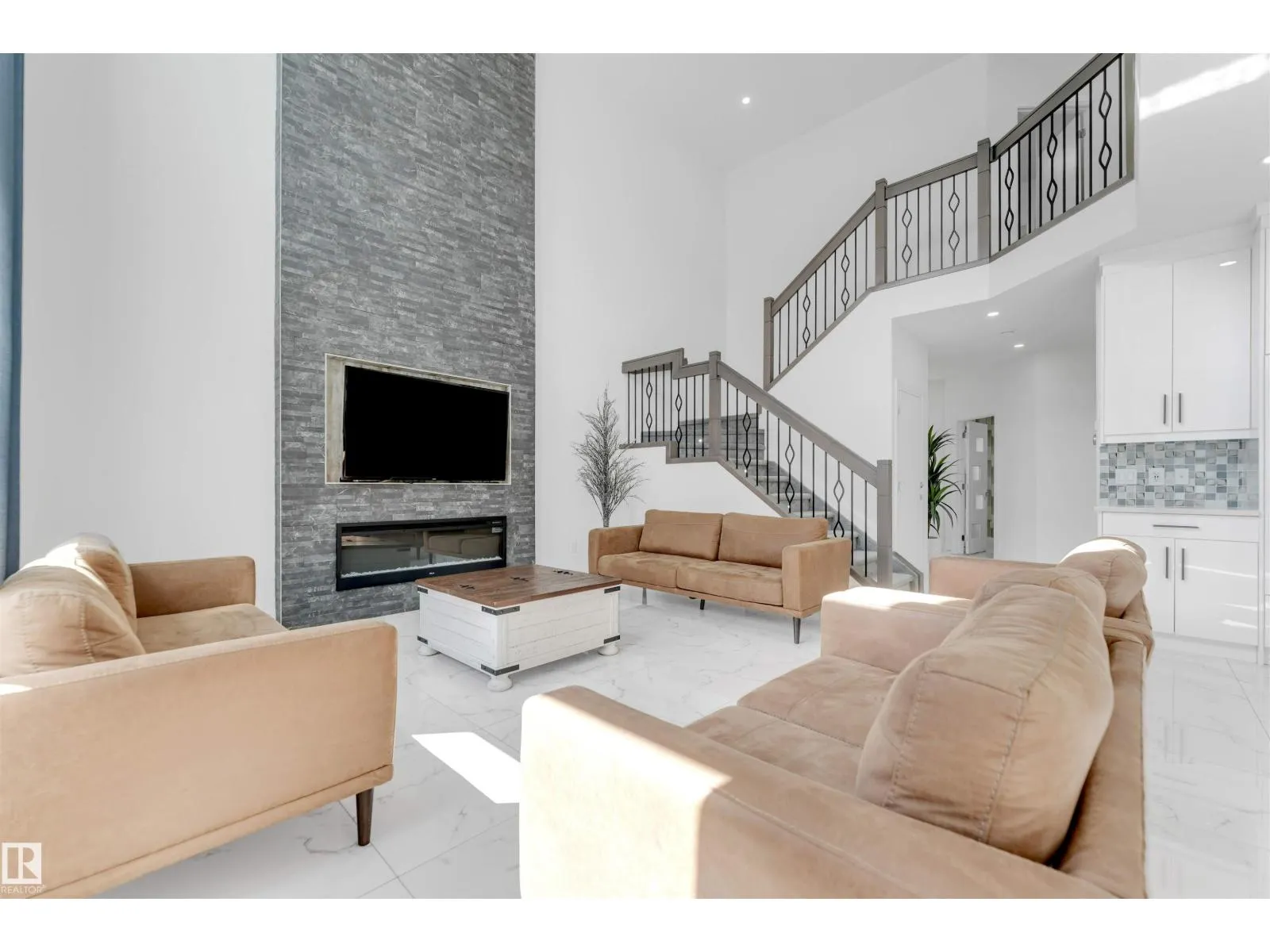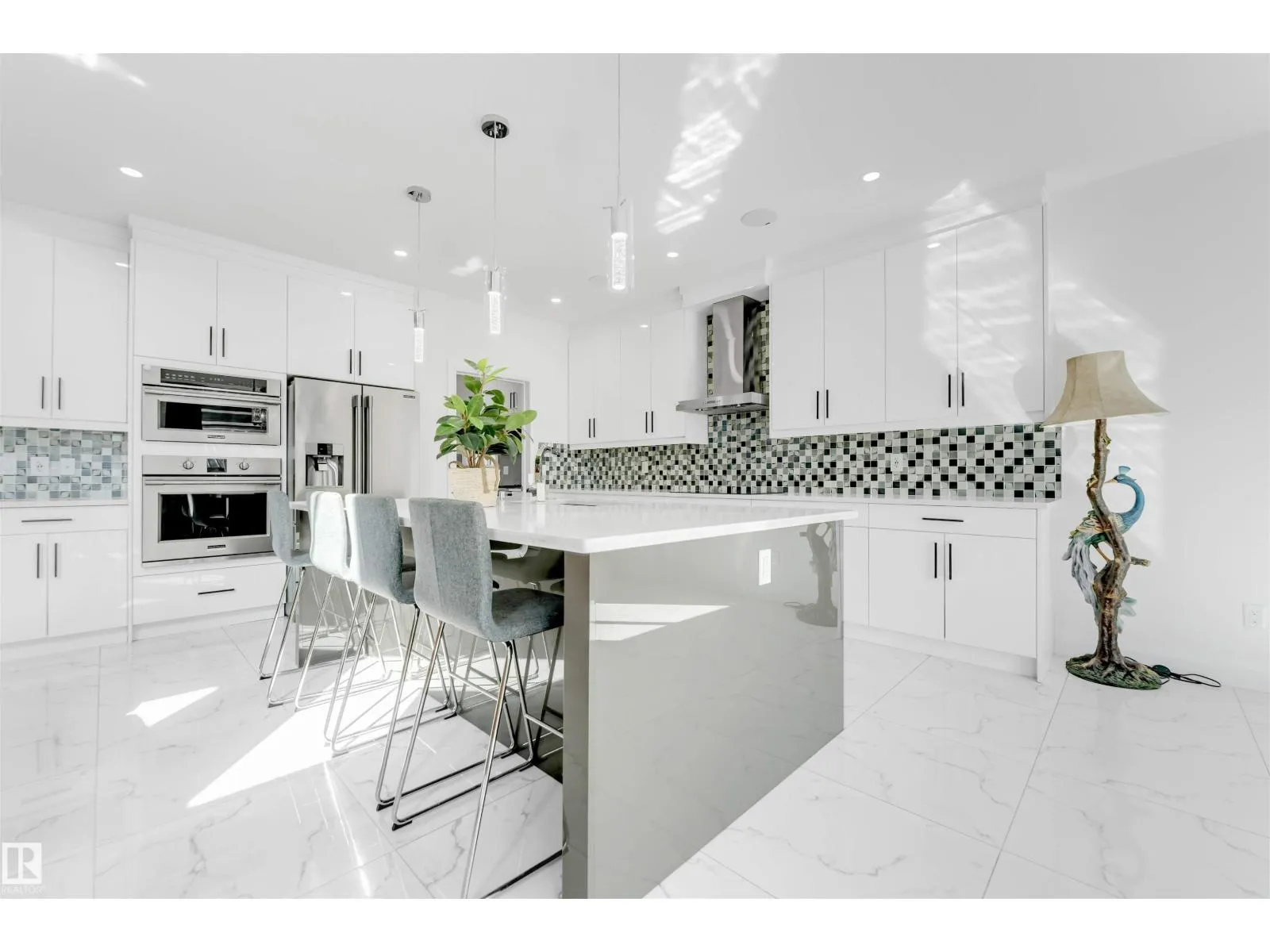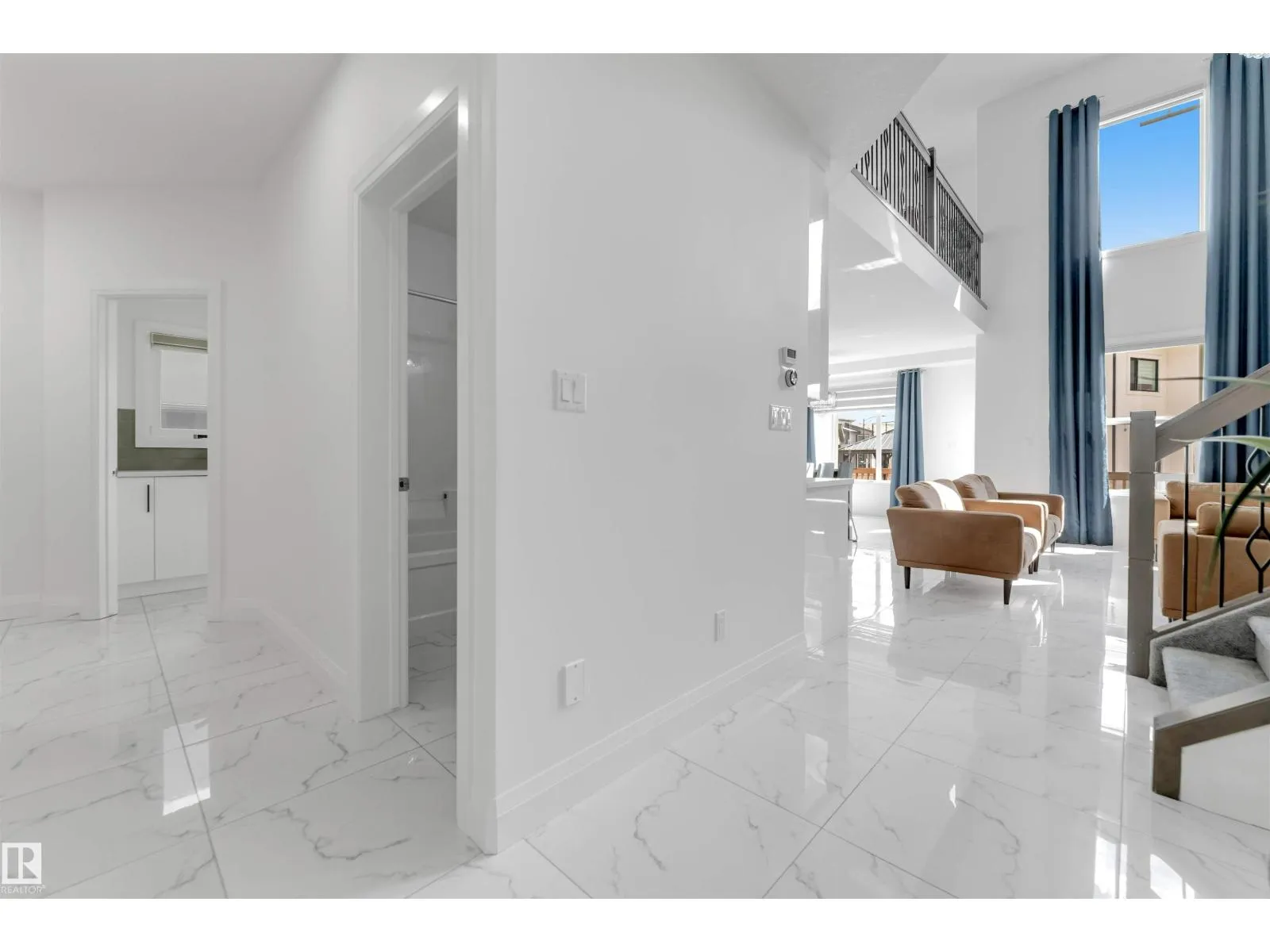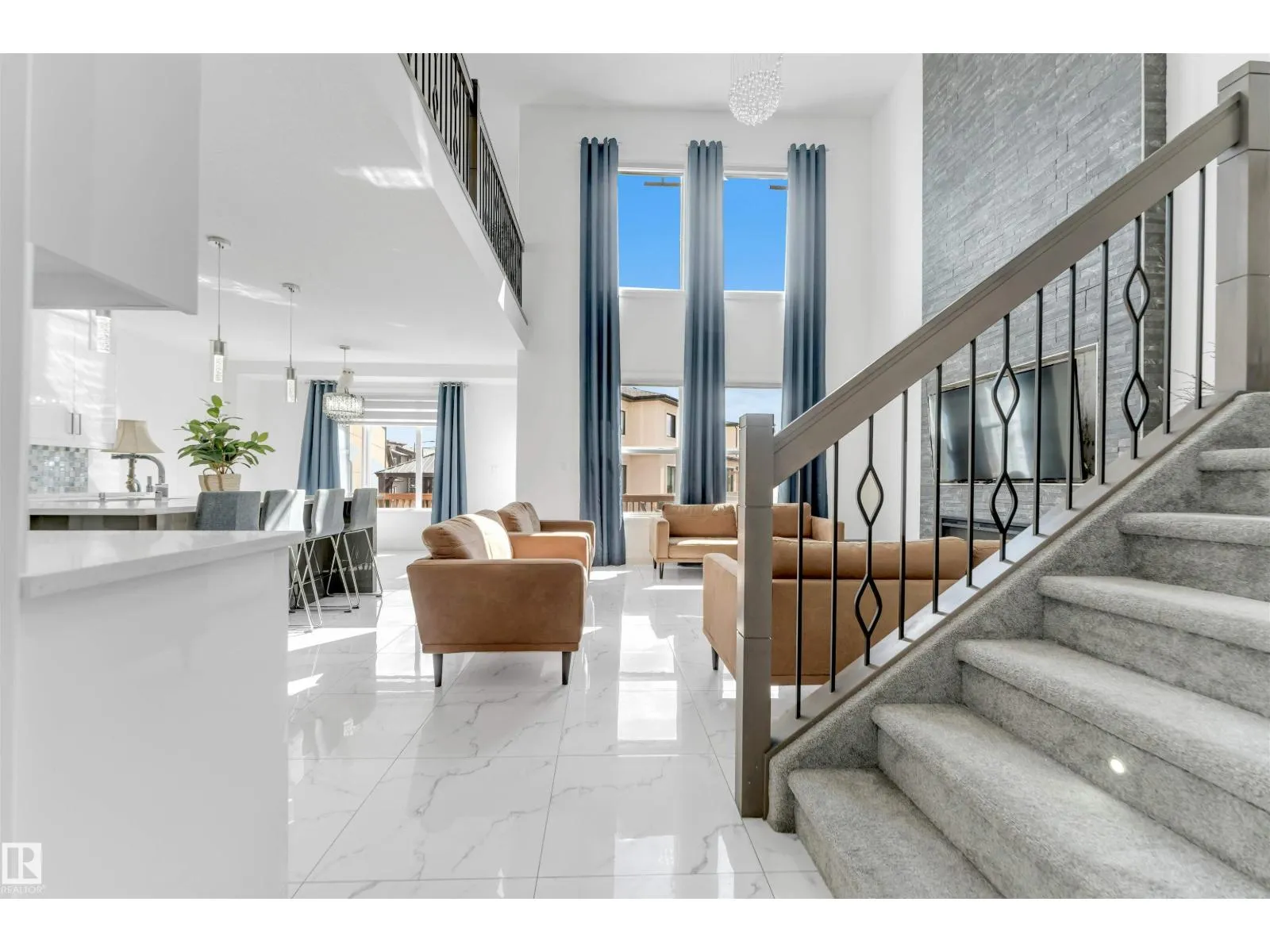 Welcome to this beautiful home featuring two Master bedrooms upstairs, Situated on a massive lot of over 9,000 sq ft. The main floor offers a stunning open-to-below living area, a spacious kitchen with a large island, and a separate spice kitchen equipped with a gas stove. Tile flooring runs throughout the main floor, which also includes a bedroom and