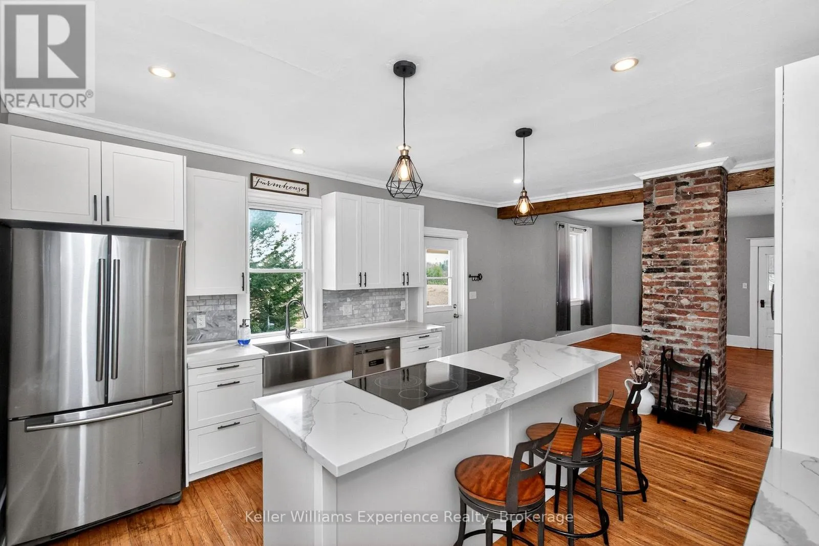 Charming 2 storey farmhouse nestled in a peaceful rural setting surrounded by open countryside and offering the privacy and tranquility of true country living. This warm and inviting home features 3 spacious bedrooms and 2 bathrooms (with a former fourth bedroom currently converted to a laundry room that could easily be reverted back) highlighted by a thoughtfully updated kitchen that