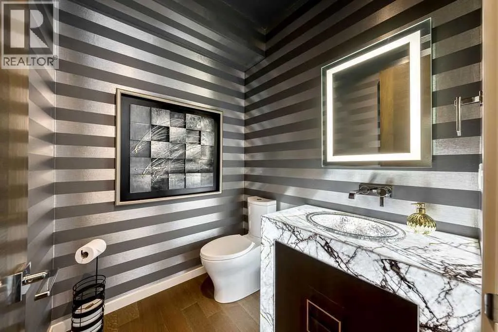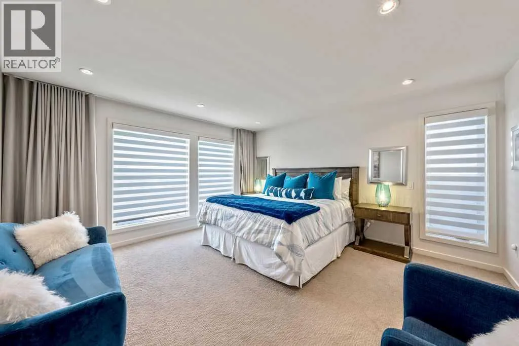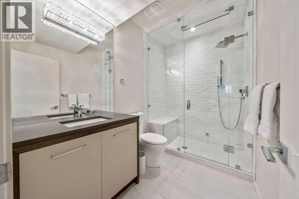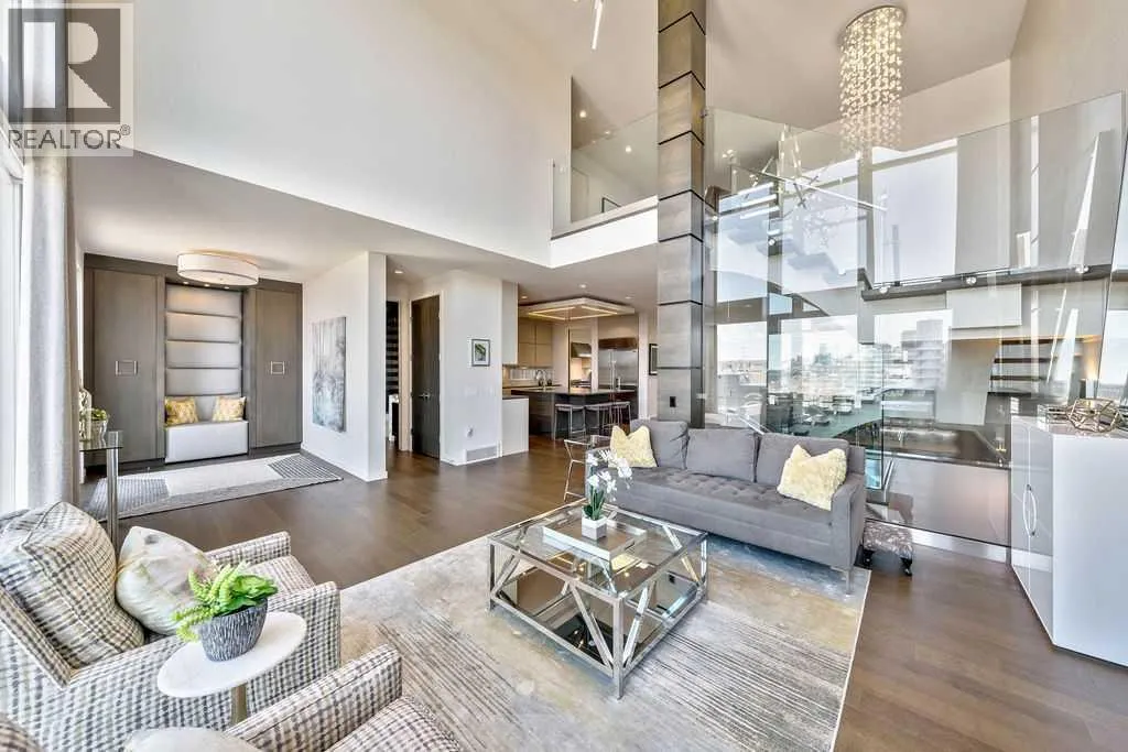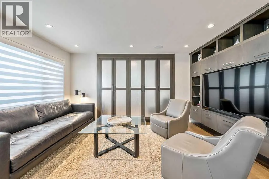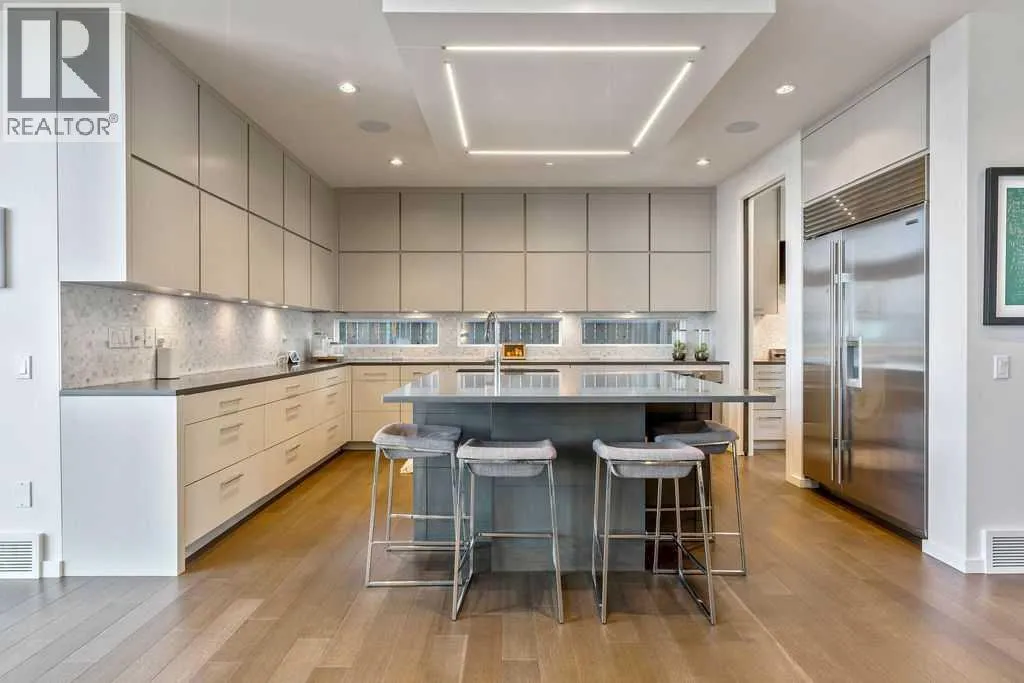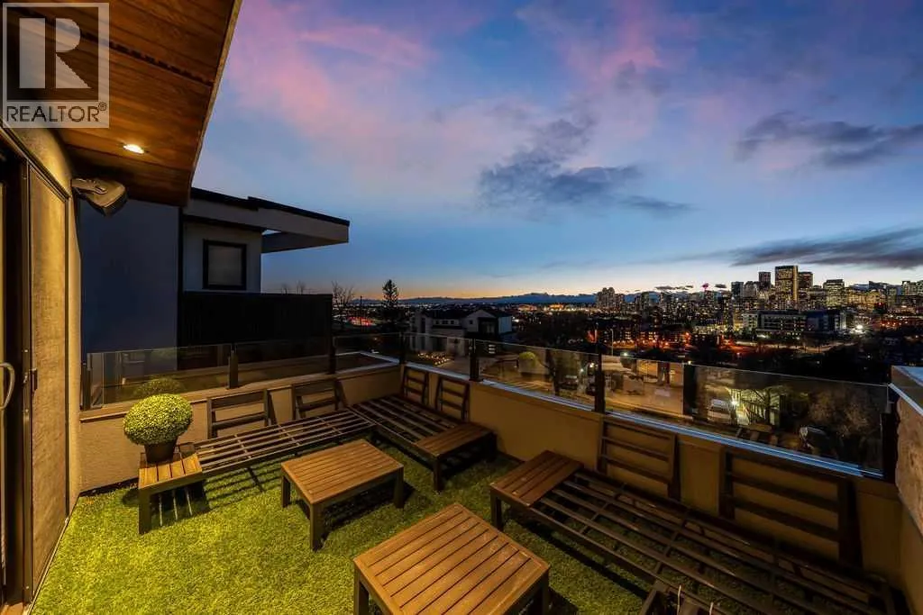 Perched on a spectacular ridge in one of Calgary’s most coveted inner-city enclaves, this exceptional residence captures truly unobstructed city skyline and Rocky Mountain views from every level. A masterful collaboration between Paul Lavoie Interior Design and Panache Homes, this architectural showpiece offers over 4,400 square feet of refined living, where scale, light, and craftsmanship converge.Defined by dramatic two-storey floor-to-ceiling