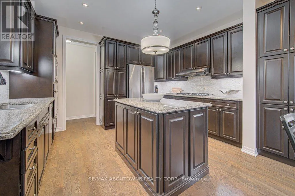 Stunning detached 4+1 bedroom 2-storey home in The Preserve, one of Oakville’s most sought-after Uptown neighbourhoods. This meticulously maintained residence is loaded with upgrades throughout. The main level features 9′ ceilings, hardwood floors, crown moulding, custom eat-in kitchen with centre island, breakfast bar, high-end stainless steel appliances, built-in pantry, granite countertops, and a walk-out to an incredible backyard
