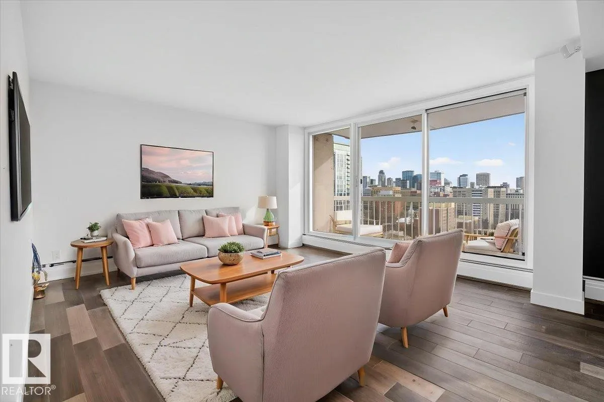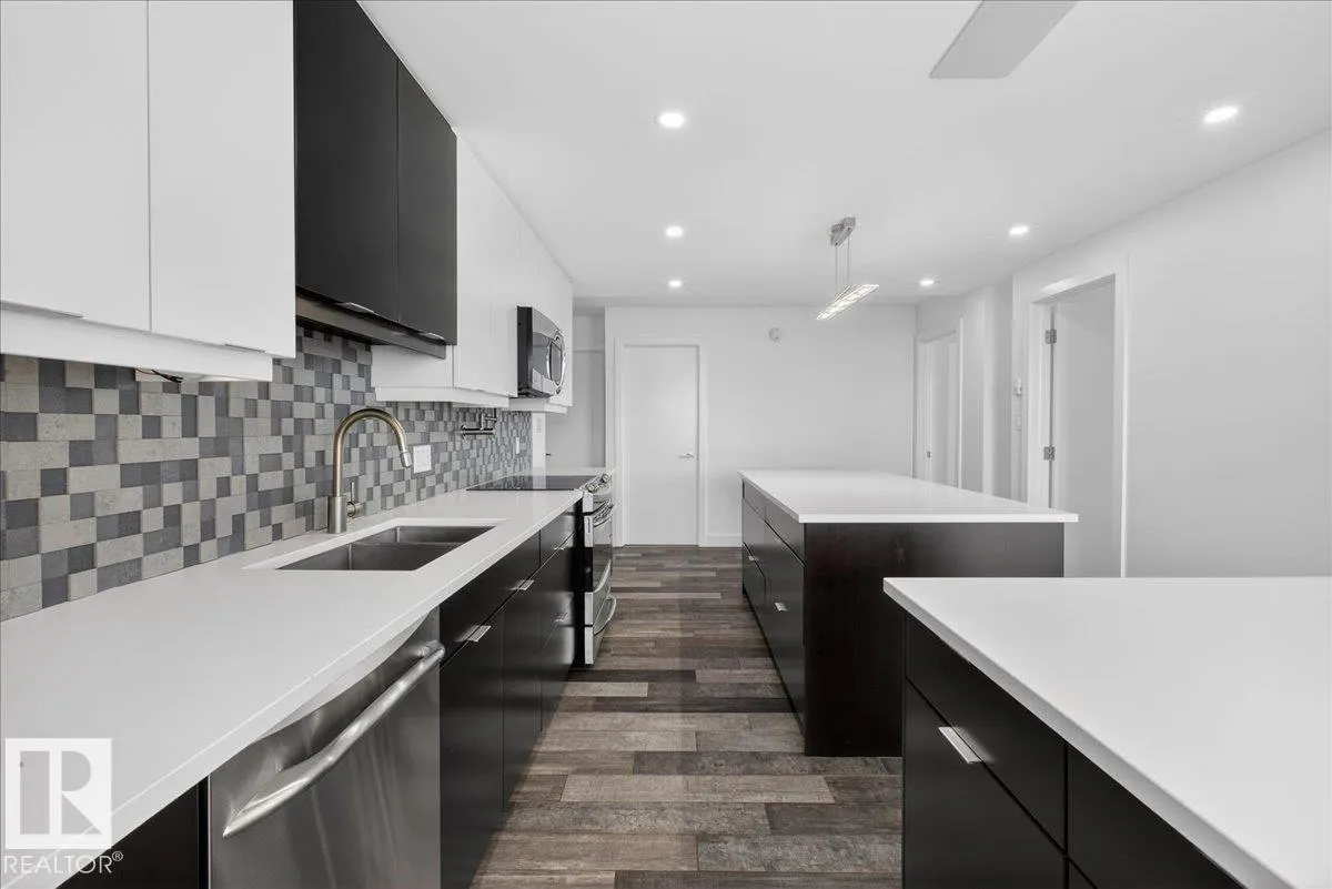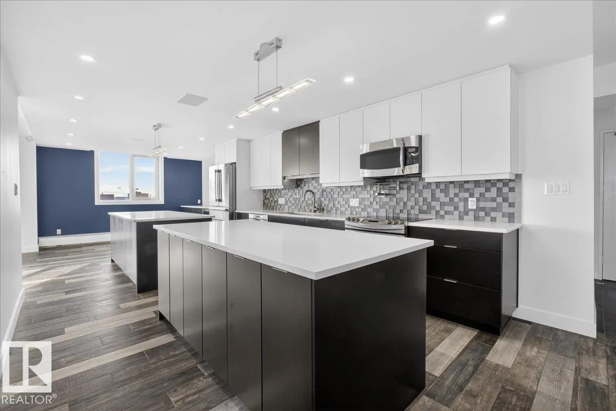 Experience refined luxury in this executive penthouse just steps from Edmonton’s river valley, where lifestyle and location come together effortlessly. This exceptional home features two private balconies with stunning views of downtown and the river valley, perfect for morning coffee or evening wine. The gourmet kitchen impresses with quartz countertops, abundant cabinetry, pot filler, bar fridge, and wine cooler,