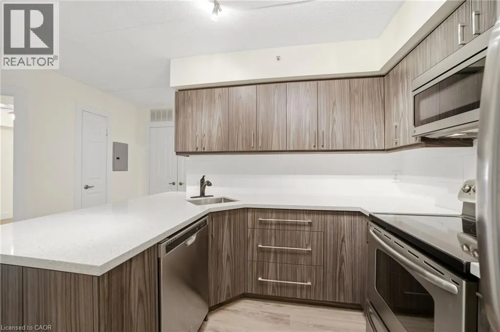 Bright and spacious, this 1 bedroom + den condo offers approximately 700 sq ft of open-concept living. The functional kitchen features a breakfast bar and opens seamlessly to the large living and dining area. A versatile den provides an ideal space for a home office or 2nd bedroom.Unit offers in-suite laundry, 1 parking space and a locker. Located close to