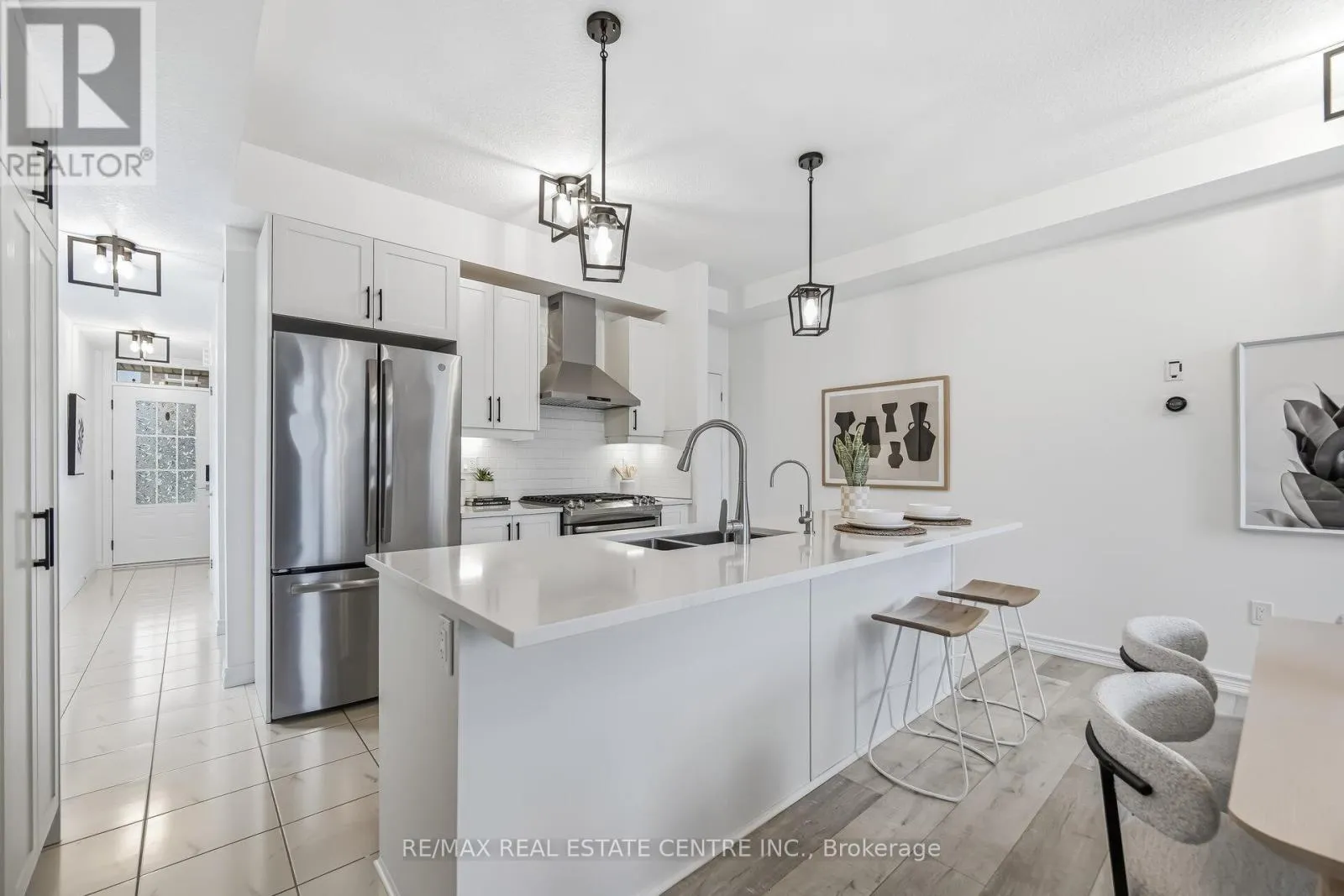 Welcome Home! This executive corner townhome is nestled within a well-maintained complex built by Bucci Homes in the heart of Milton. This bright, private residence features extra windows and abundant natural light, complemented by a functional open-concept layout with 9-foot ceilings on the main floor.Extensively upgraded throughout with brand new laminate flooring and fresh paint is complimented by quartz countertop