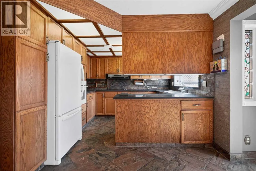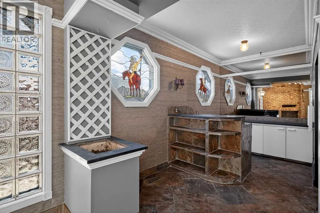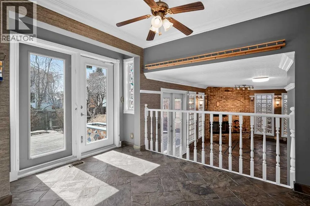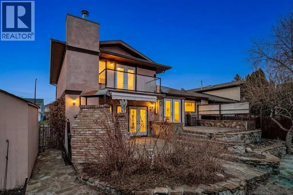 SW, it offers 1,833 square feet of life above the earth, shaped over decades by hands that favoured quiet creativity over the plain or the ordinary, laying slate upon the floors and setting intricate mosaics with deliberate care. It does not mirror the sterile, gray trends of today, but it possesses something far rarer: a rugged, undeniable soul. Upon entry, the home breathes easily, opening into a formal living room beneath vaulted ceilings before stepping up to a raised, separate dining room – a dignified arrangement rarely built in these hurried times. Beyond this lies the kitchen and a breakfast nook that looks out onto the golden arc of the southern sun and a magical, terraced backyard built for a gardener, complete with an outdoor brick fireplace waiting for woodsmoke and quiet evenings. Inside, the kitchen opens freely to the family room, a space designed with purpose and heralded by a brick-faced, wood-burning fireplace of its own. The main floor continues to unfold with a dedicated bar, a large walk-in closet ready to swallow up heavy winter wear, and a two-piece bathroom just inside the door leading to the heated, attached garage. The stairs carry you up to three generous bedrooms, including a primary suite that offers a quiet retreat, complete with a solid three-piece ensuite bathroom, a walk-in closet, and a private balcony where one can stand and look out over the life of the yard below. A four-piece bathroom with a steam shower serves the remaining two bedrooms, rooms that have held the echoes of a family growing up. Down below, the basement digs into the earth to provide a den or flex room, a secondary liv ing space for recreation, another two-piece bathroom, and ample storage cabinets for the tools and keepsakes of a life well lived. Though the home stands empty now, ready to embrace a new vision, its bones have been well cared for, with an updated furnace, replaced windows, and the modern comfort of central air conditioning. An honest home, waiting patiently for the writing of its next chapter. (id:62650)
