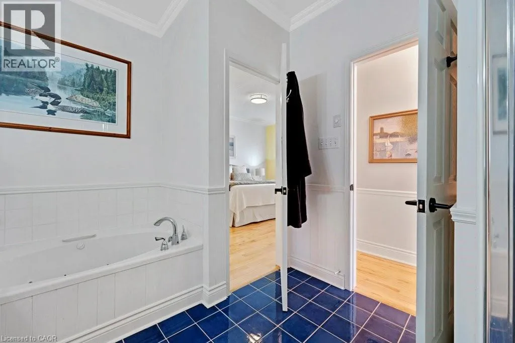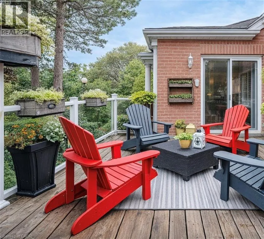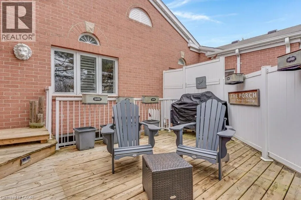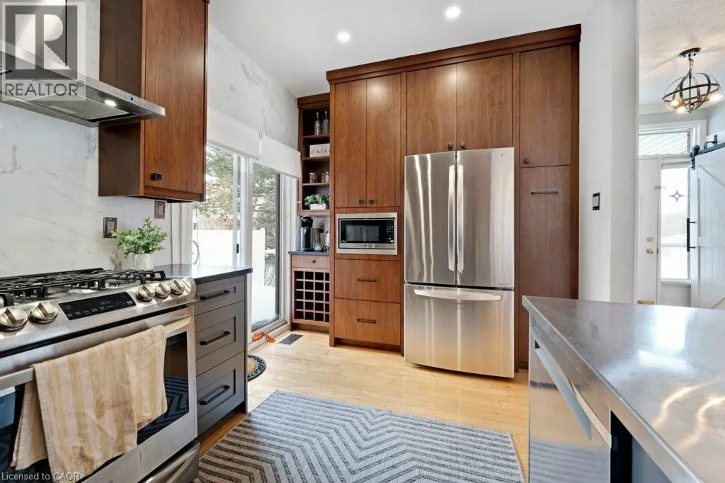 Experience the perfect blend of nature and modern luxury at the Riverwalk Condominiums. This stunning two-bedroom raised bungalow offers a rare lifestyle opportunity along the banks of the Grand River. The heart of the home is a chef-inspired kitchen, fully updated in 2024/2025 with rich walnut cabinetry, porcelain walls, and a striking mix of stainless steel and leathered granite countertops.